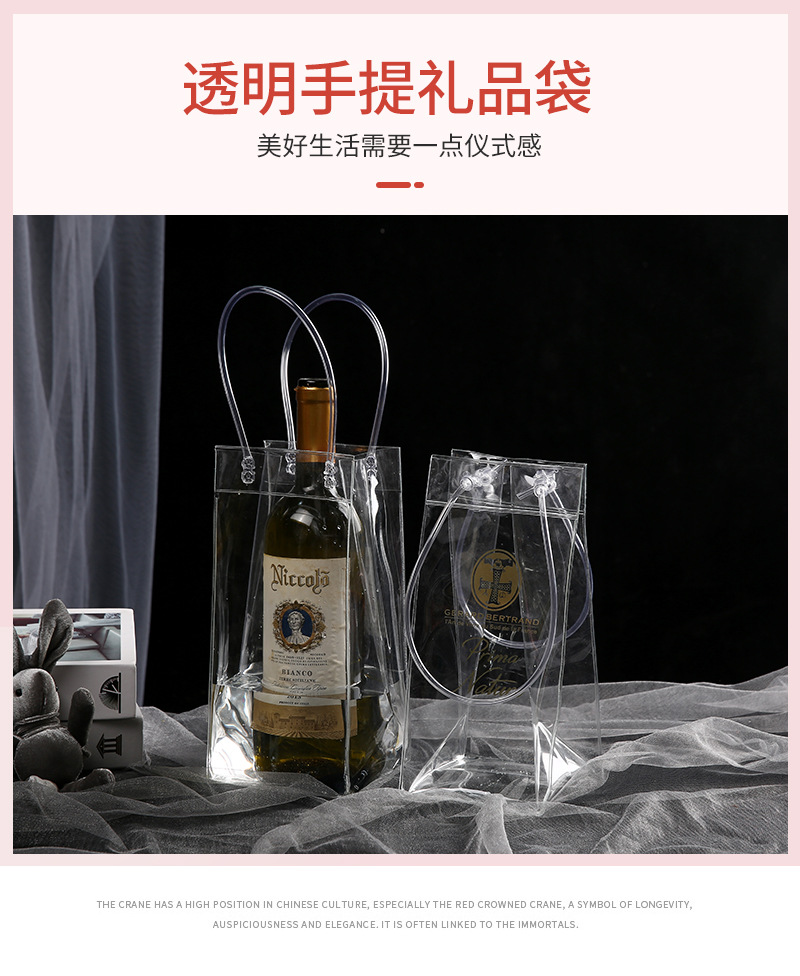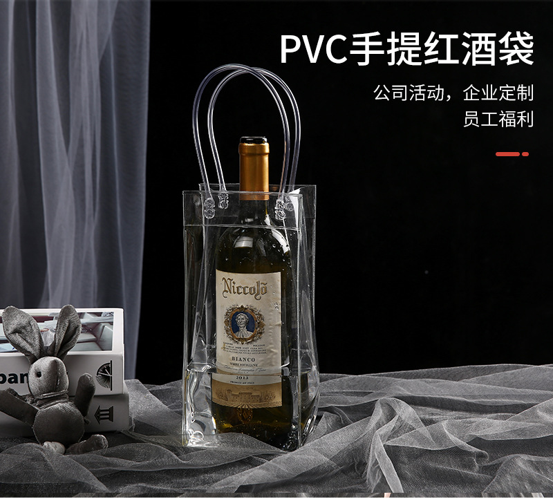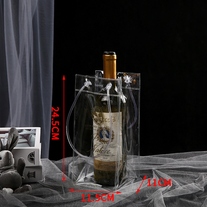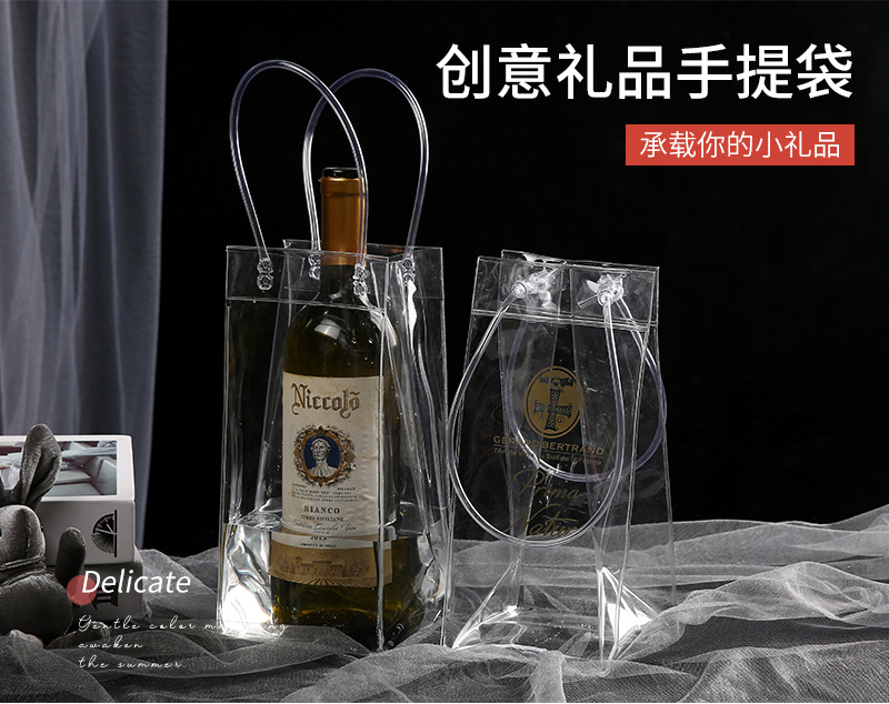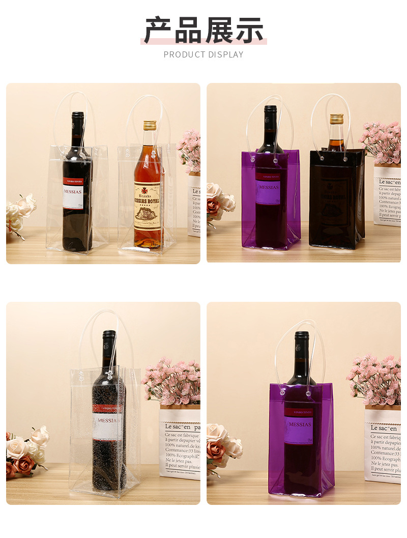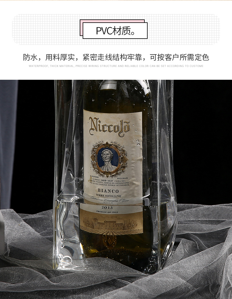 재고 Pvc 누출 방지 아이스 와인 휴대용 아이스 와인 가방 와인 포장 투명 핸드백 선물 가방스토어 가기