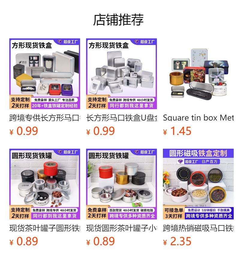 재고 도매 작은 사각형 배지 U 디스크 철 상자 네일 클리퍼 귀걸이 보석 틴플레이트 상자 포장 보관 상자스토어 가기