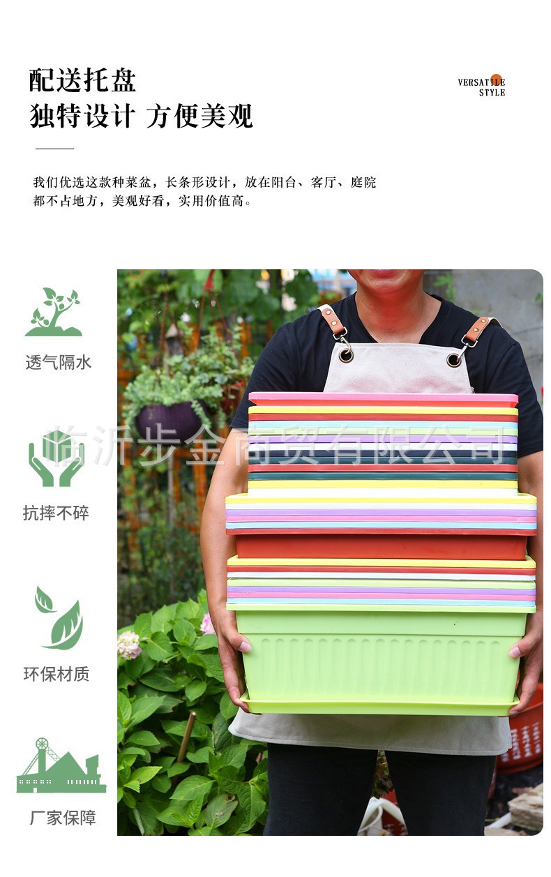 신소재 수출용 채소 재배 화분 가정 원예 발코니 채소 재배 화분 플라스틱 수지 직사각형 화분 화단 긴 화분