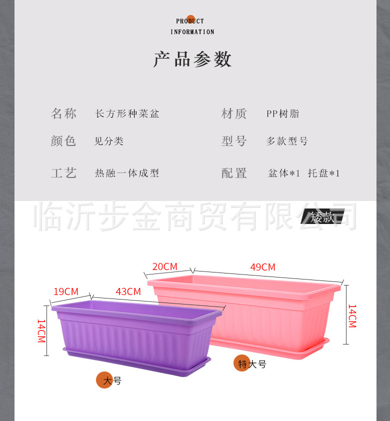 1、花盆外径尺寸:小号43cmX19cmX14cm,底部有空,在室内种菜种花的朋友 ,建议买带托盘的,浇水不会弄脏周边。