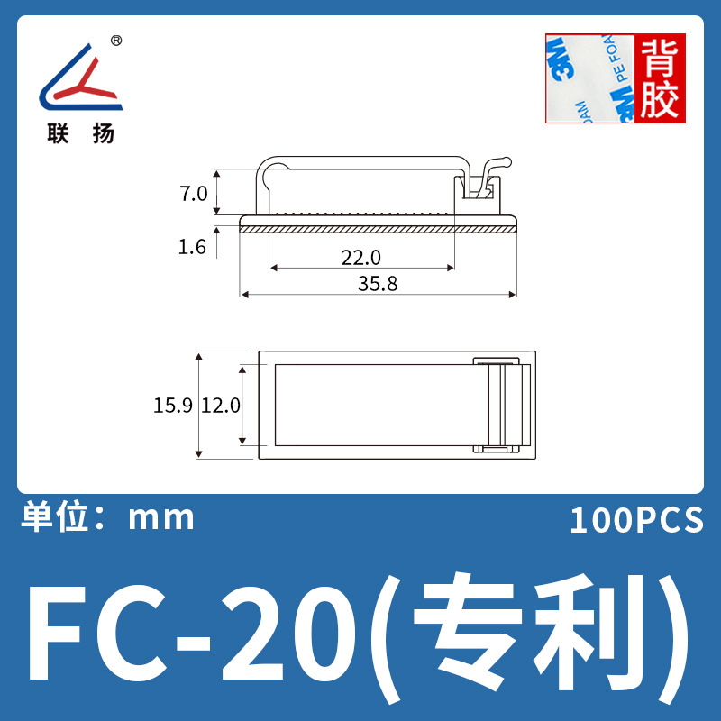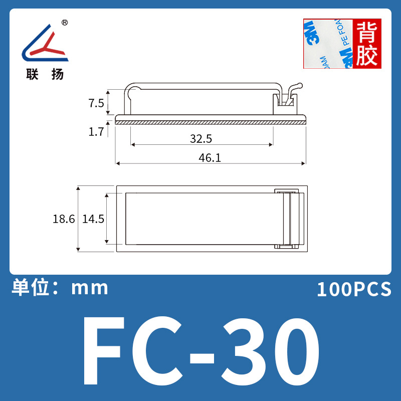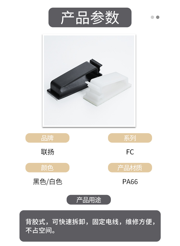 리안양 공장 도매 FC 접착식 케이블 클립, 접착식 전선 고정대, 전원선 배선 클립