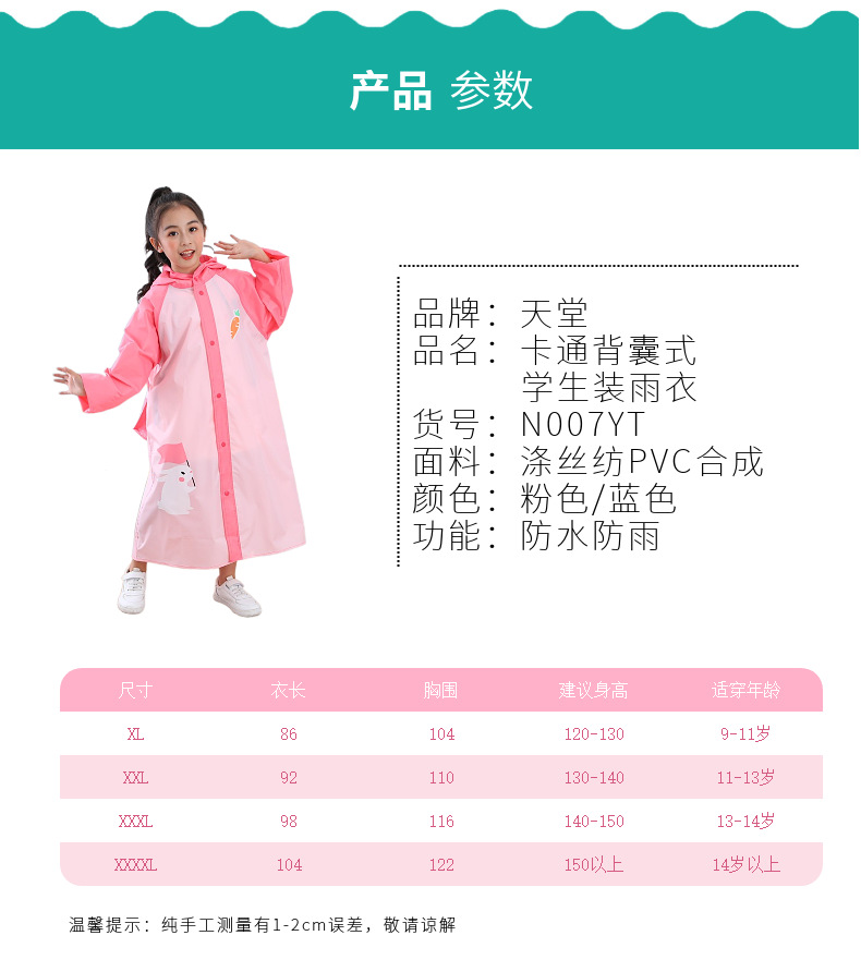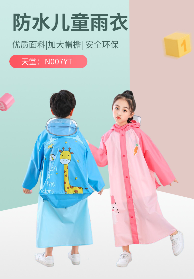 파라다이스 어린이 비옷 유치원 초등학교 소년 소녀 판초 일회용 아기 비옷 (책가방 포함)