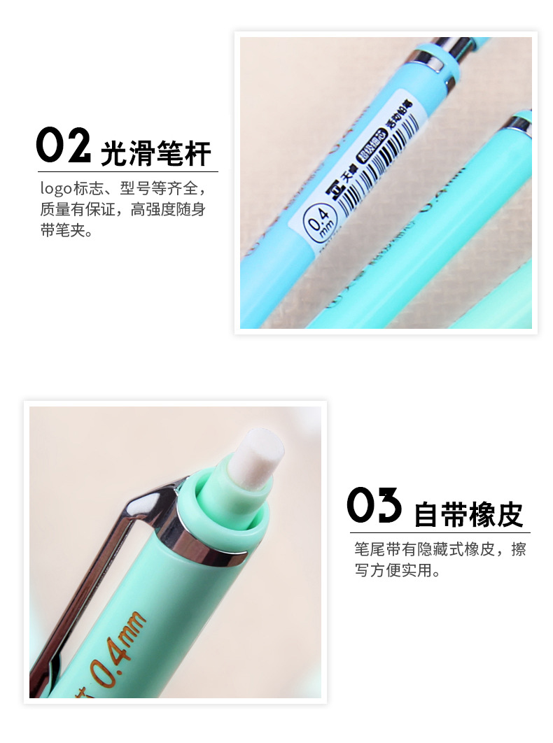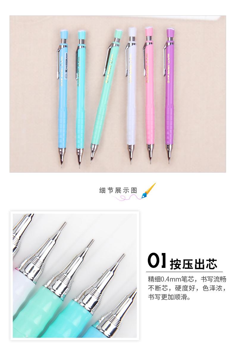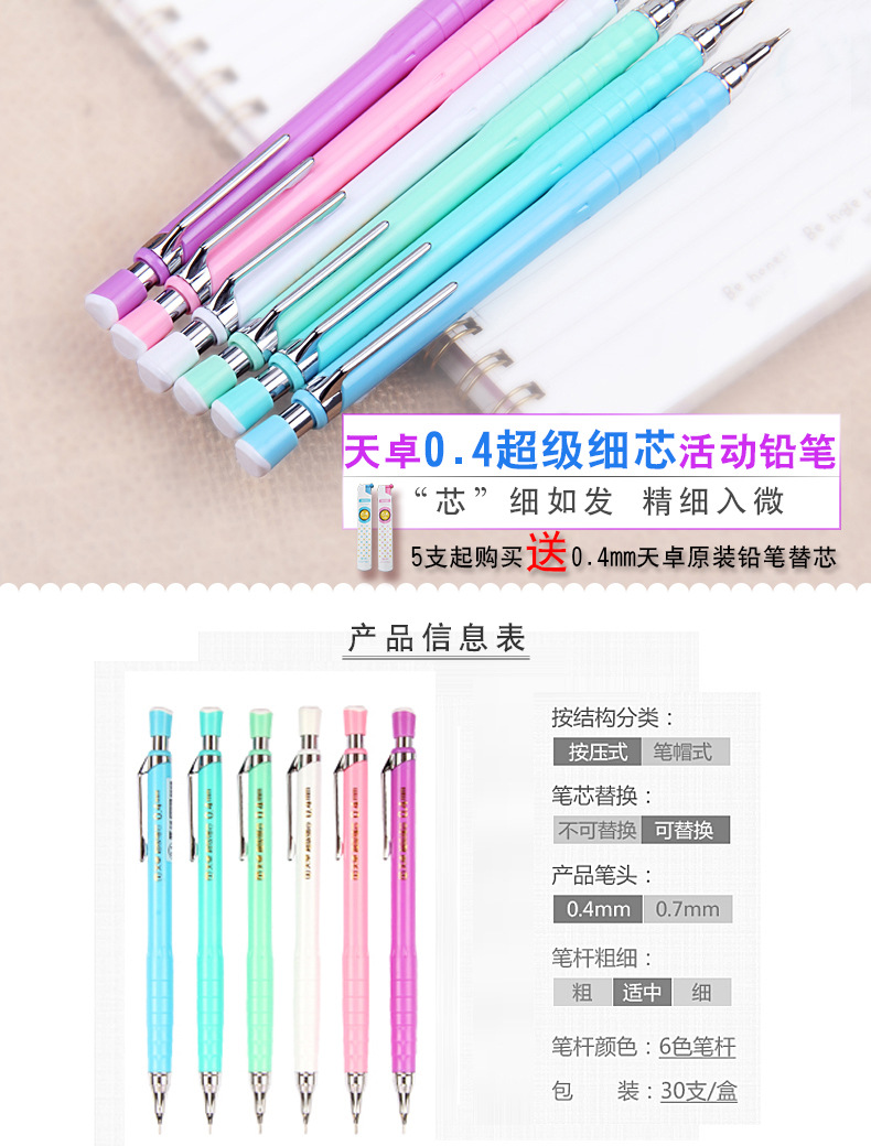 天卓0.4自动铅笔自动笔可爱糖果色学生自动铅超细活动铅笔配笔芯