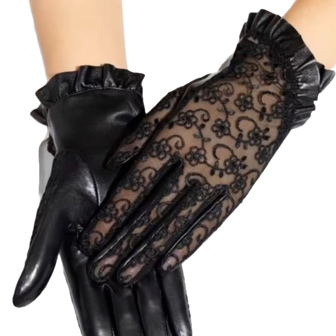 • [울 러플 양가죽 장갑] 여성용 골지 레이스 엄지 앰버