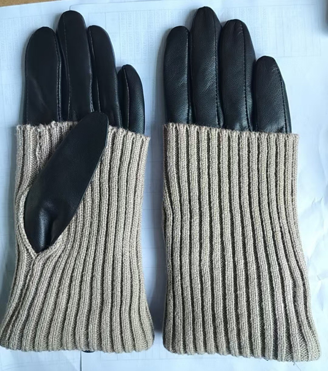 • [울 골지 양가죽 장갑] 여성용 골지 블랙 가죽 베이지 아몬드 골지