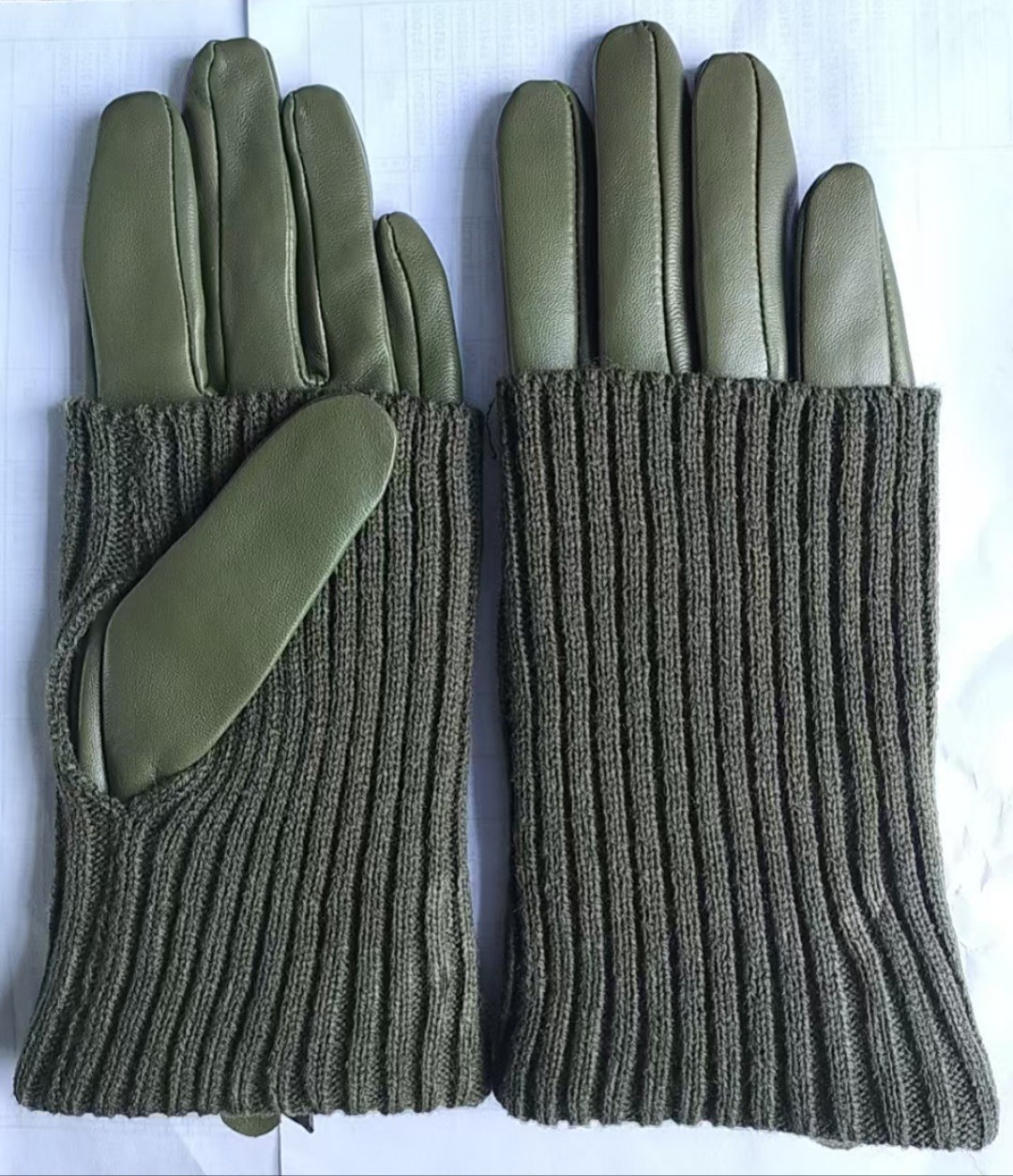 • [울 러플 양가죽 장갑] 여성용 골지 레이스 엄지손가락 올리브 그린