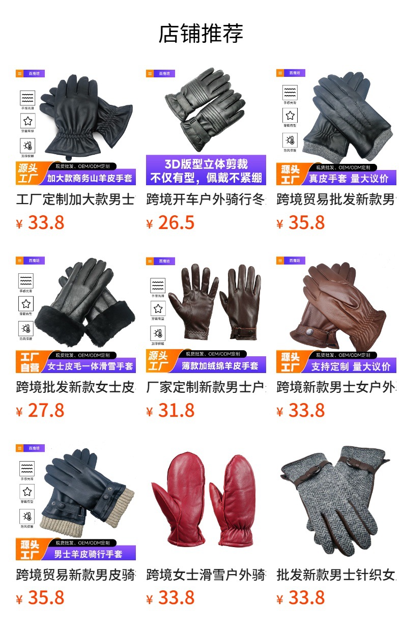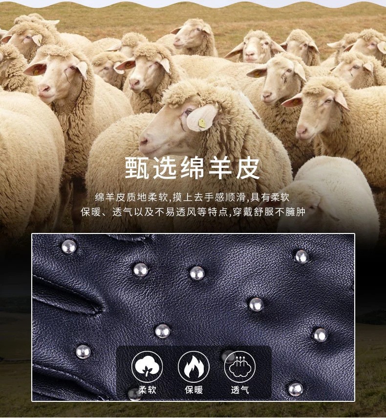 크로스보더 도매 방한 장갑 겨울 라이딩 터치스크린 천연 가죽 스키 양가죽 남성 겨울 가죽 장갑 공장스토어 가기
