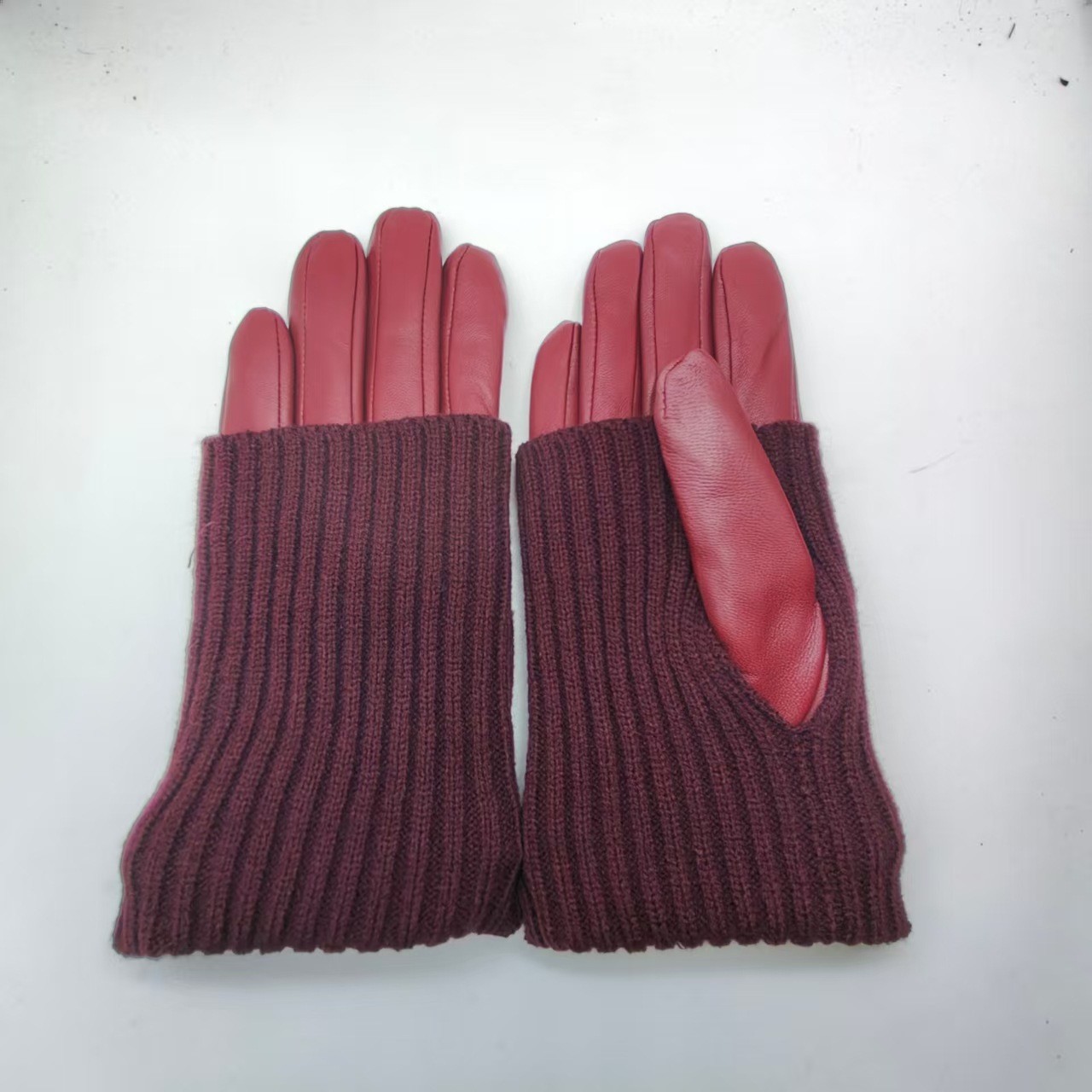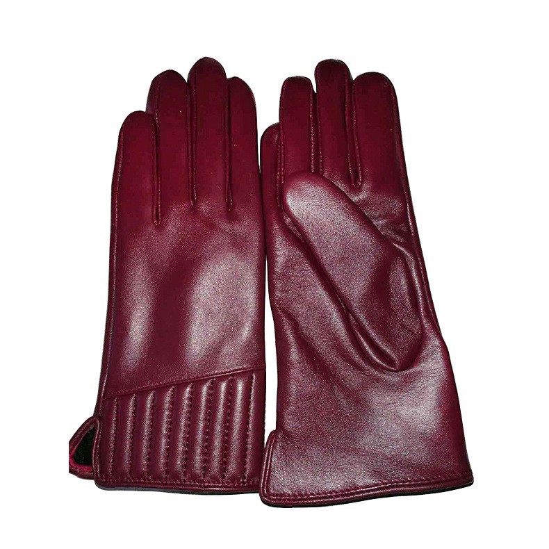 • [양가죽 자수 모델] 여성용 골지 누수 엄지 진한 빨간색
