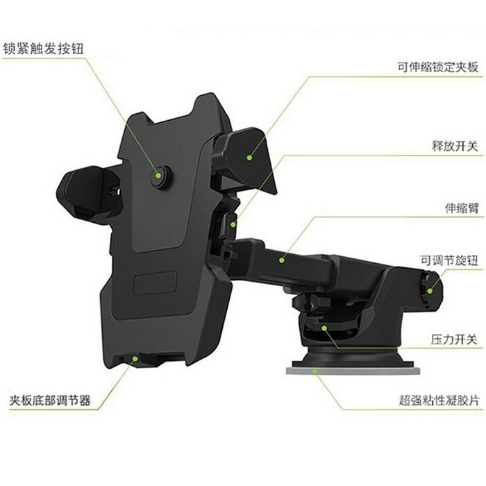 新款自动锁伸缩式车载吸盘手机支架(硅胶吸盘超稳固、多角度、距离自主调