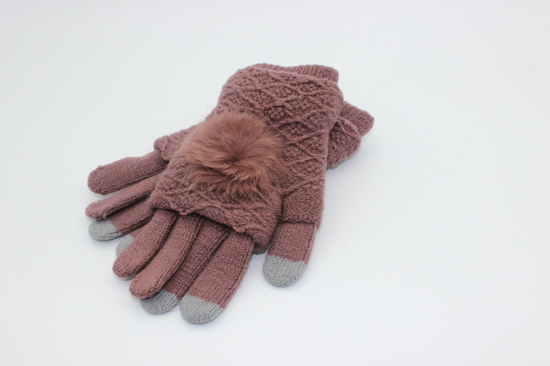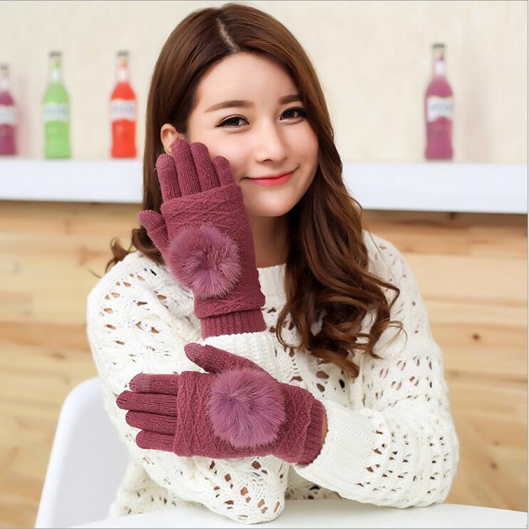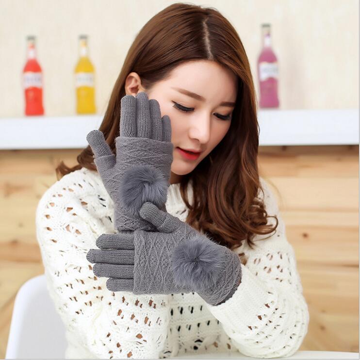 토끼 모피 전체 손가락 니트 터치 스크린 장갑 여성 가을과 겨울 기모 두꺼운 따뜻한 학생 귀여운 사이클링 반 손가락 3 사용