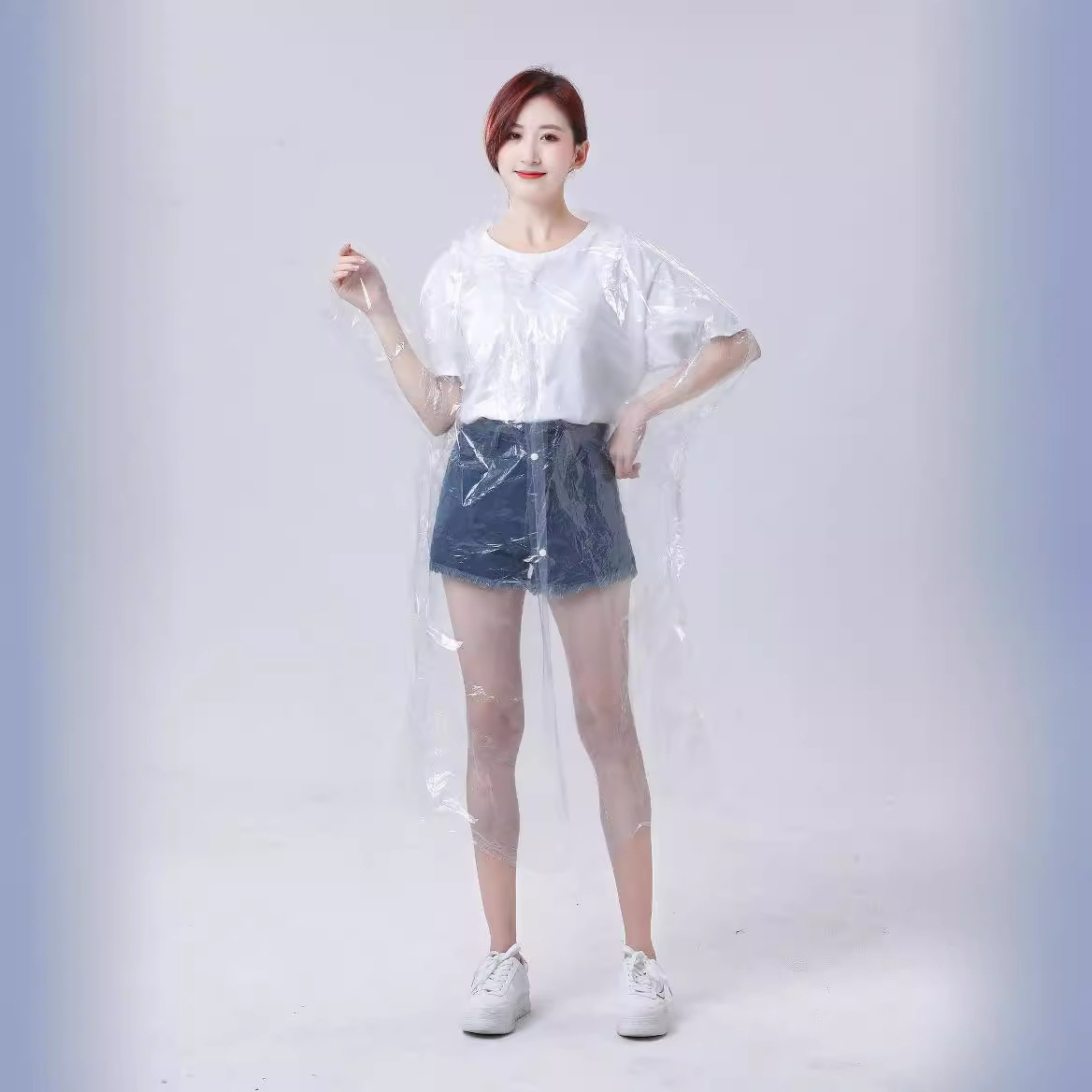 PE高压新料带扣雨衣