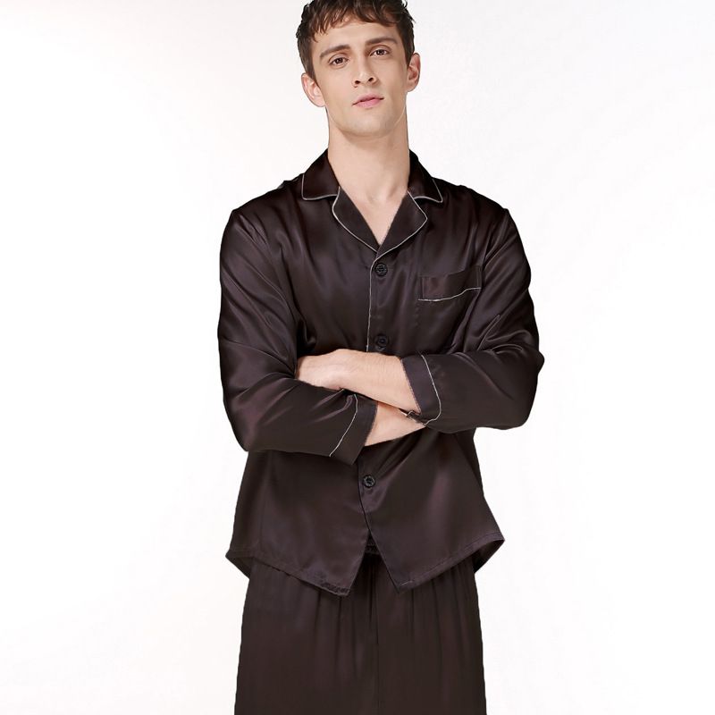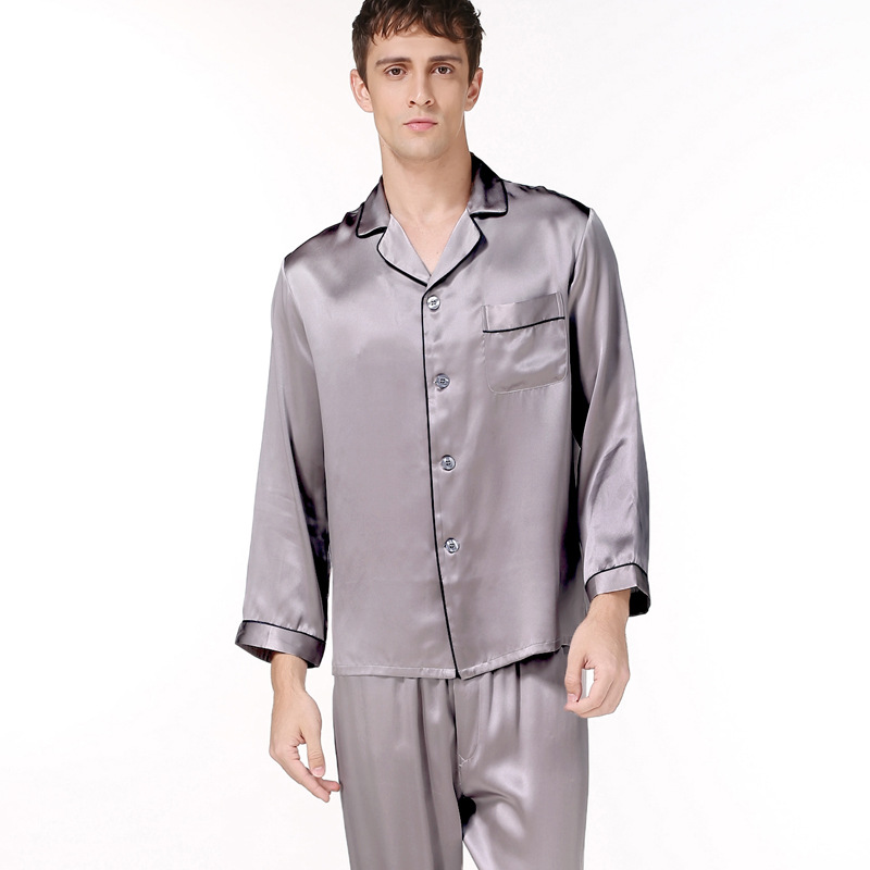 도매 봄과 여름 남성 실크 잠옷 2 피스 세트 긴 소매 심플 100 누에 실크 가정 의류 T9002