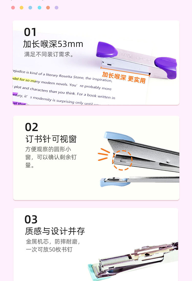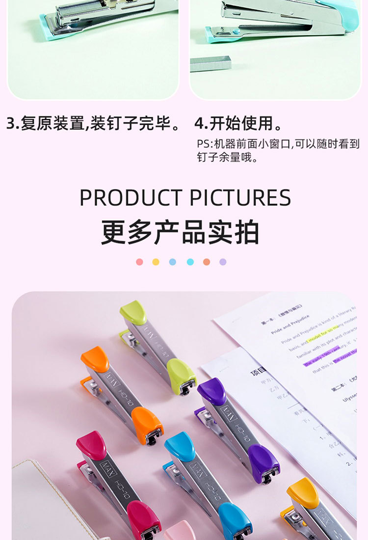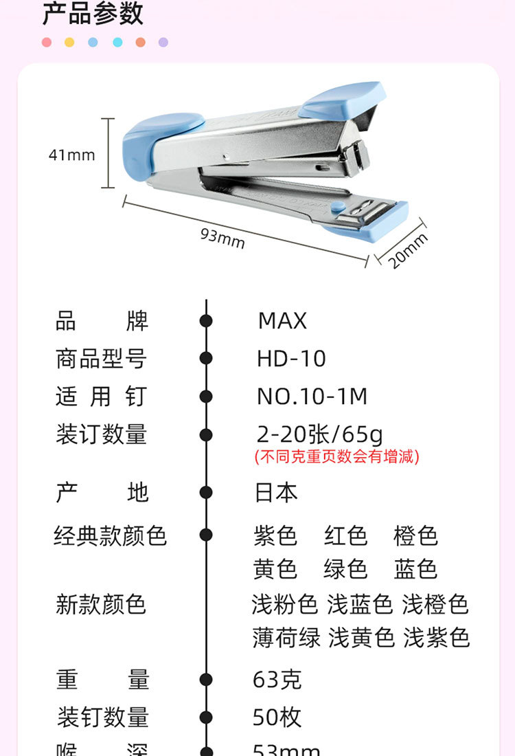 MAX 10호 스테이플러는 15페이지까지 스테이플링이 가능한 HD-10 스테이플러, 미니 휴대용 스테이플러입니다.스토어 가기