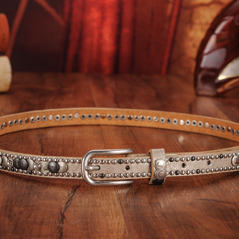 새로운 패션 리벳 벨트 에스닉 스타일 레트로 벨트 여성용 라인 석 상감 청바지 바지 벨트