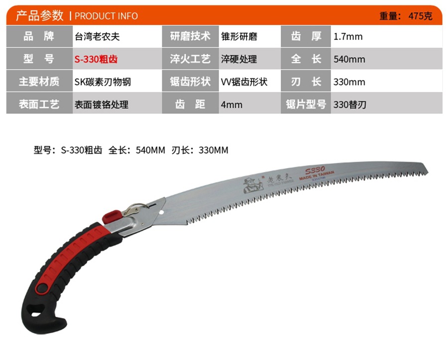 오래된 농부 손 톱 S330 톱날 곡선 톱 대만 가지 치기 톱 정원 전체 날 톱 SK5 쇠톱
