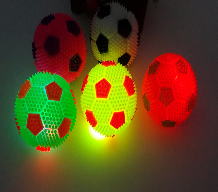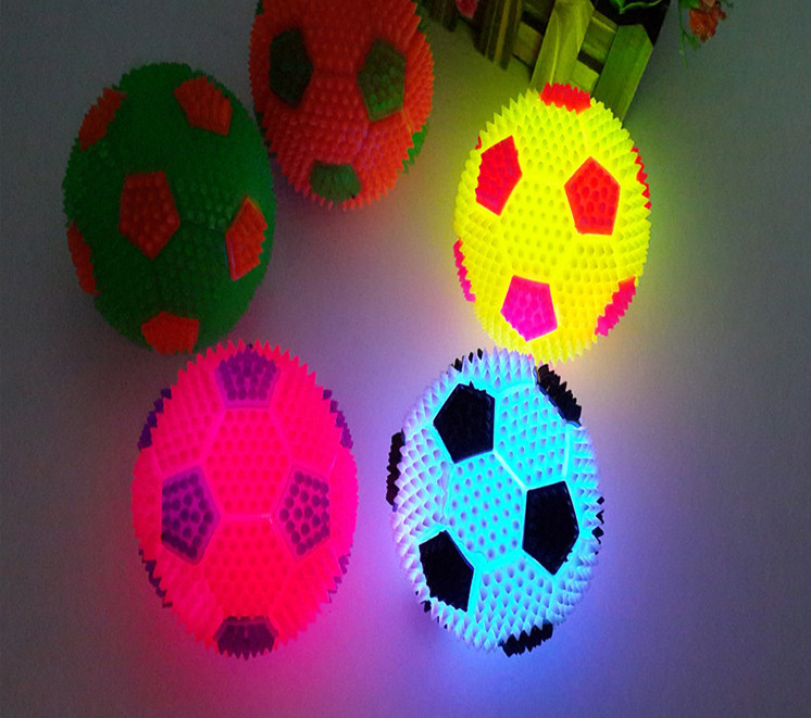 빛나는 소리 축구 tpr 치아 청소 및 어금니 LED 플래시 중형 개 저녁 산책 개 훈련 대화 형 개 장난감 공스토어 가기