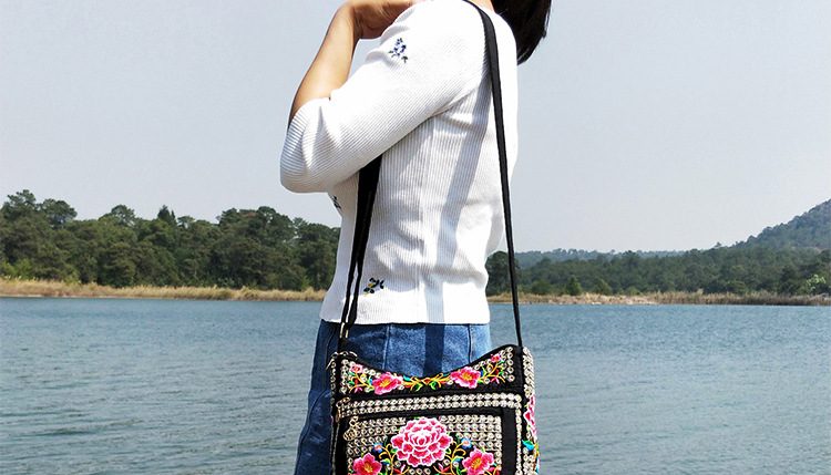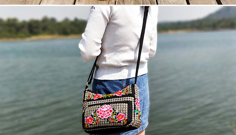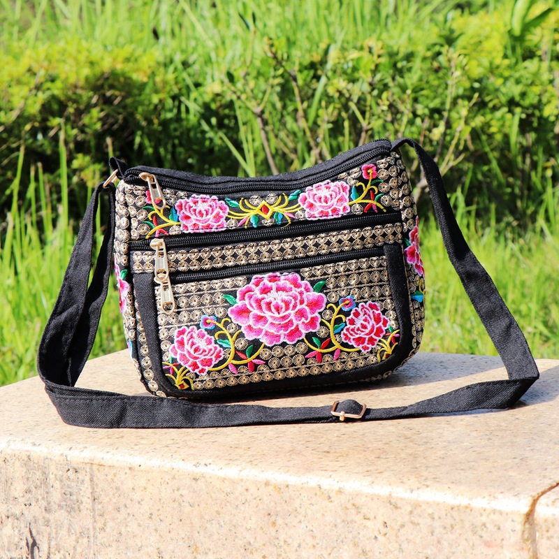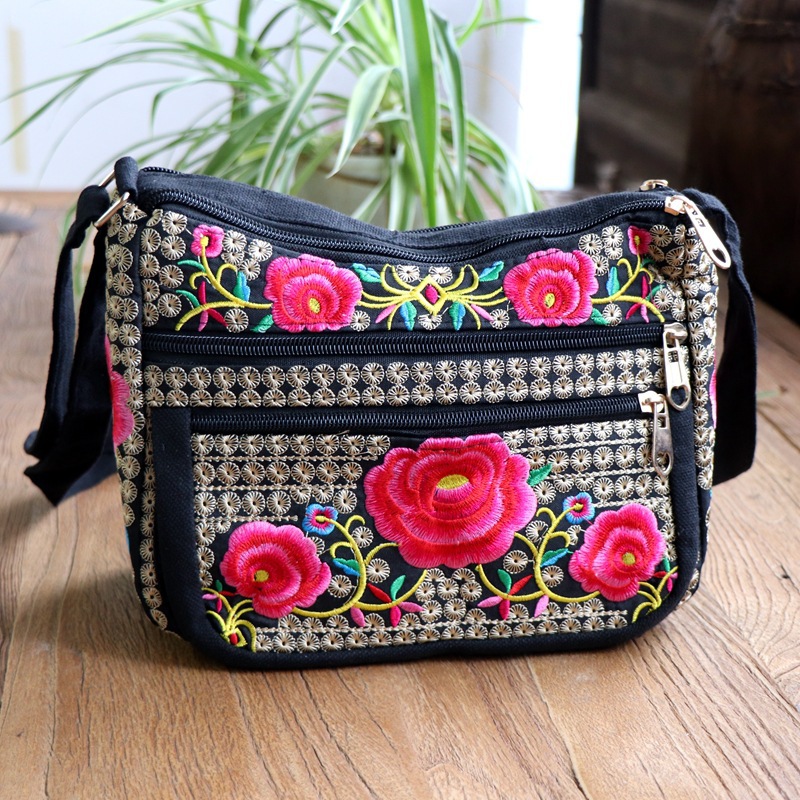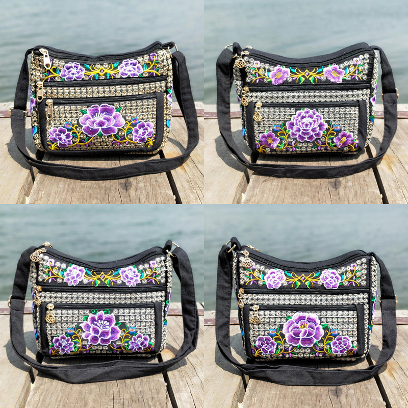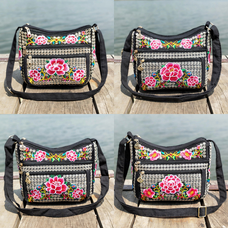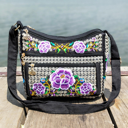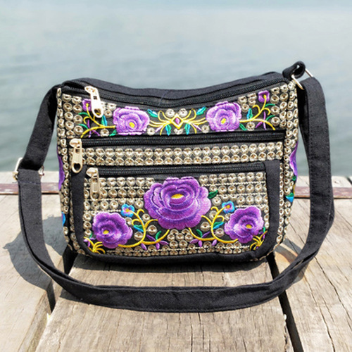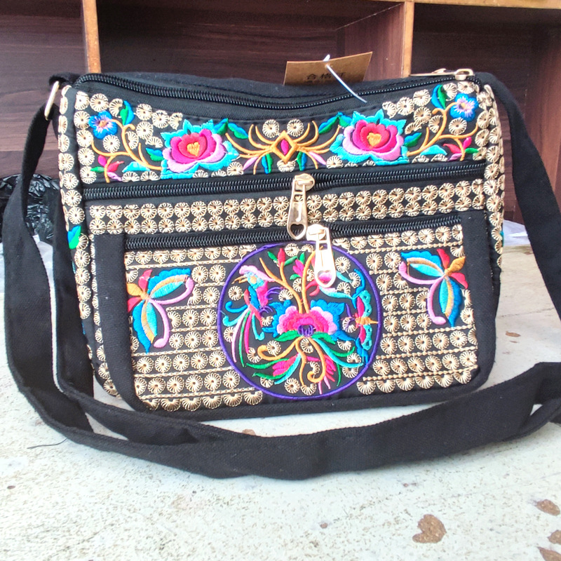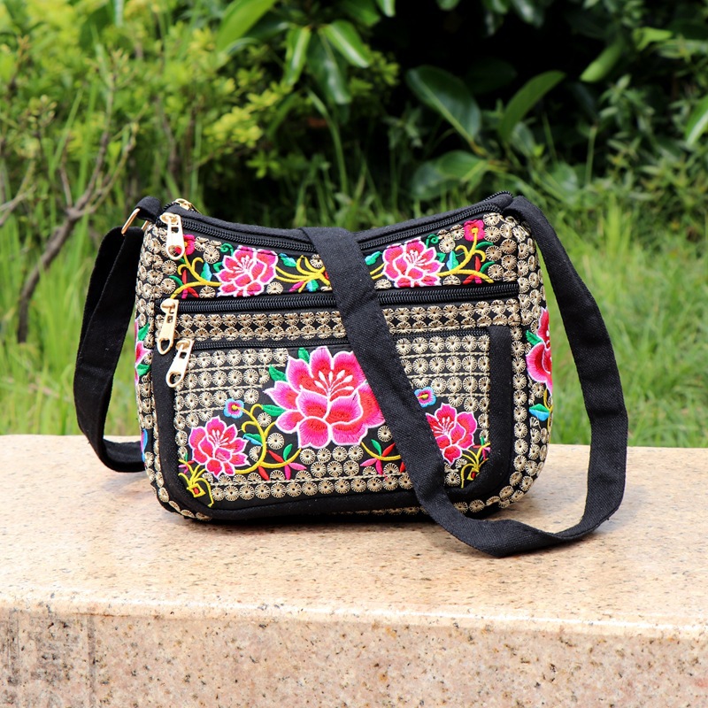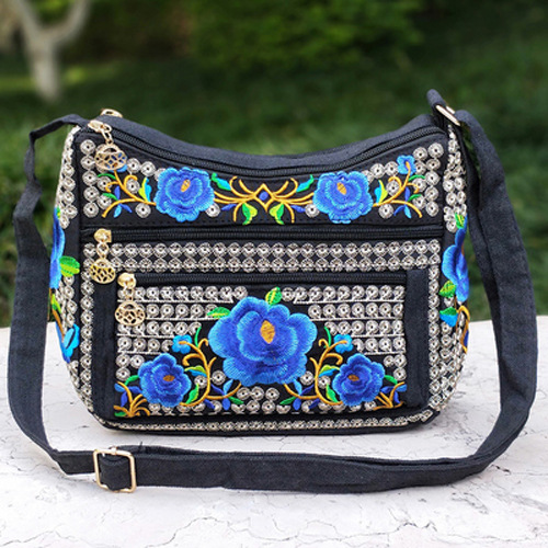 공장 다이렉트 2023 신형 중년 여성 가방 에스닉 자수 가방 자수 캔버스 여성 숄더 백