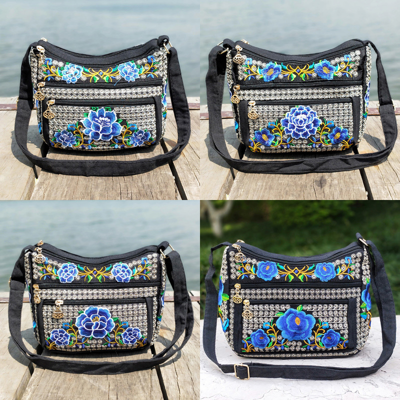 공장 다이렉트 2023 신형 중년 여성 가방 에스닉 자수 가방 자수 캔버스 여성 숄더 백스토어 가기