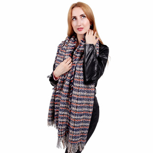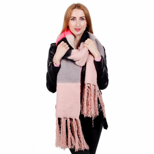 韩国东大门几何彩色麻块仿羊绒围巾舒适保暖百搭学生披肩两用流苏
