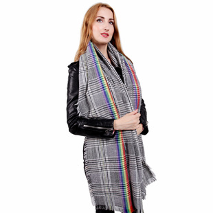 韩版彩虹条格纹围巾大气走秀款加厚保暖百搭长巾学生围脖披肩外贸