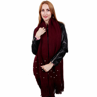 2018围巾女针织毛线纯色钉珍珠长巾加厚保暖百搭学生两用披肩外贸
