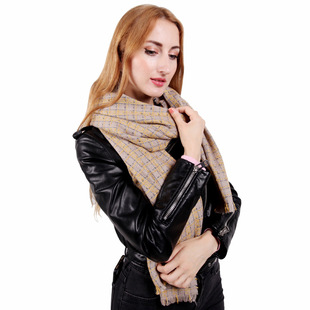 18韩国东大门冬季新款小格仿羊绒围巾女学生百搭加厚保暖金丝线