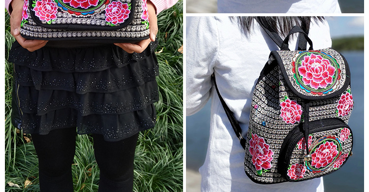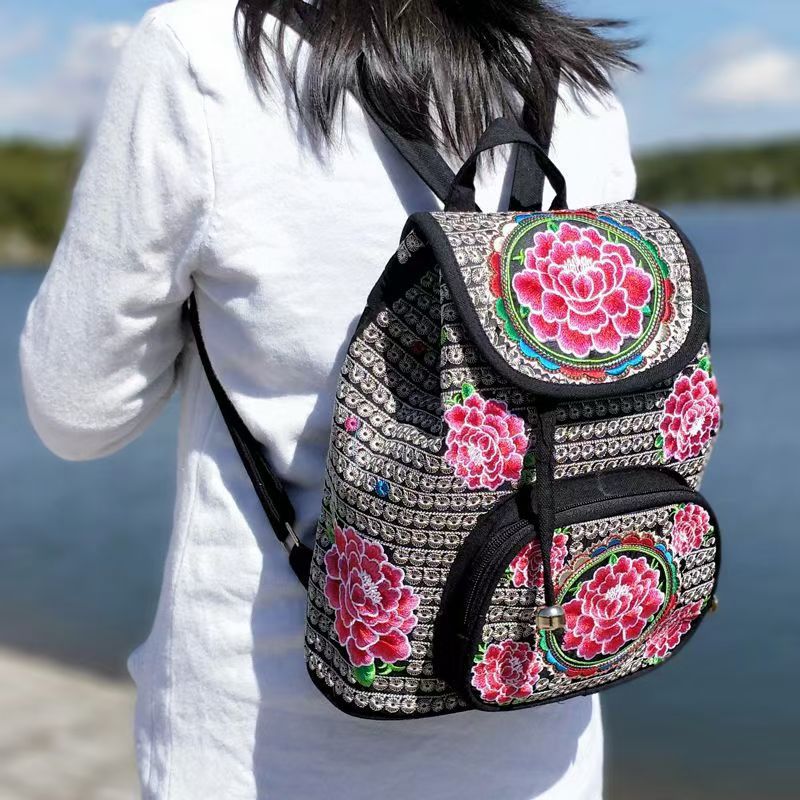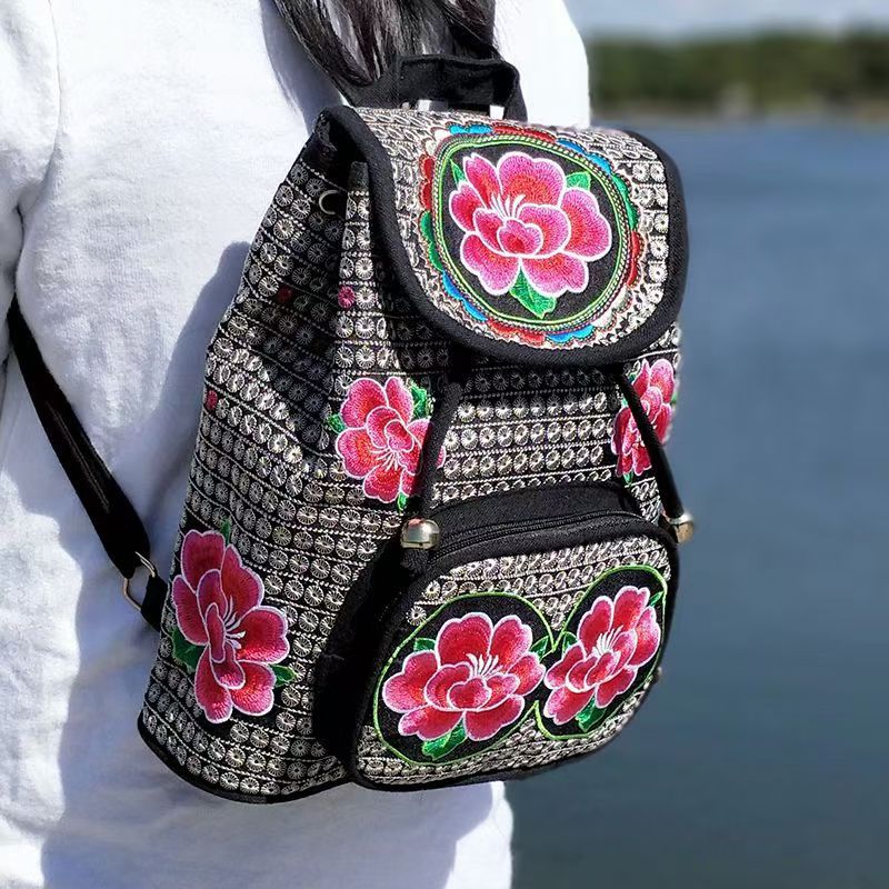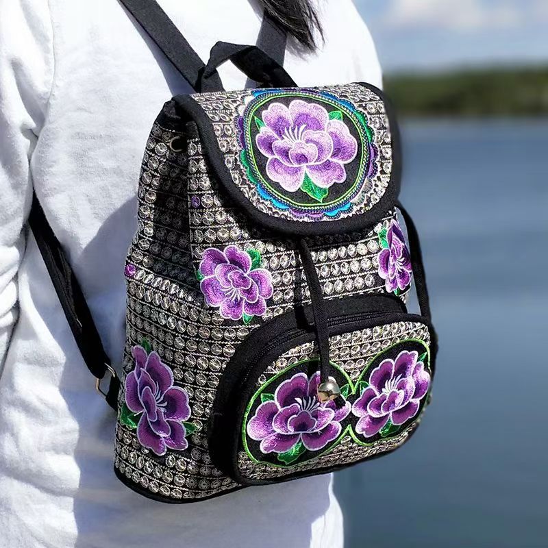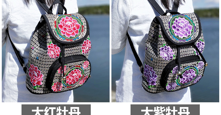 공장 직접 윈난 민족 자수 배낭 도매 두꺼운 캔버스 여성 자수 배낭 배낭
