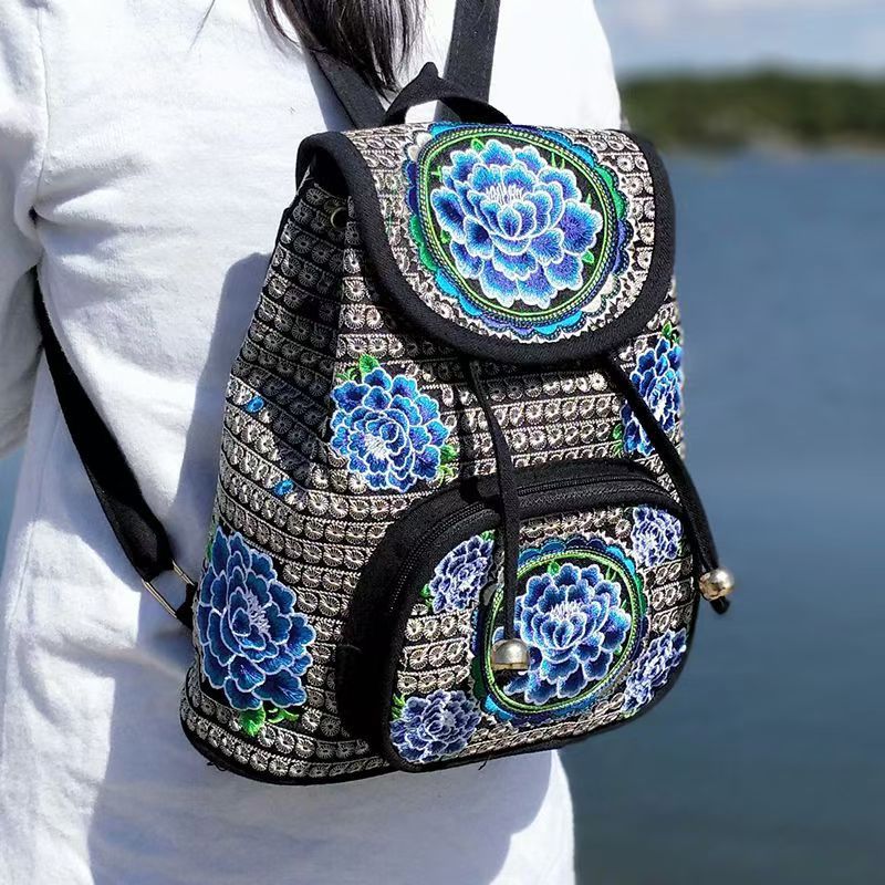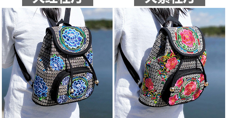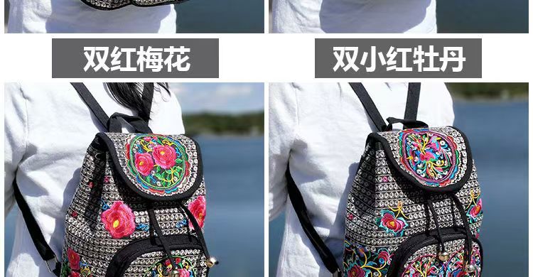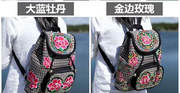공장 직접 윈난 민족 자수 배낭 도매 두꺼운 캔버스 여성 자수 배낭 배낭스토어 가기