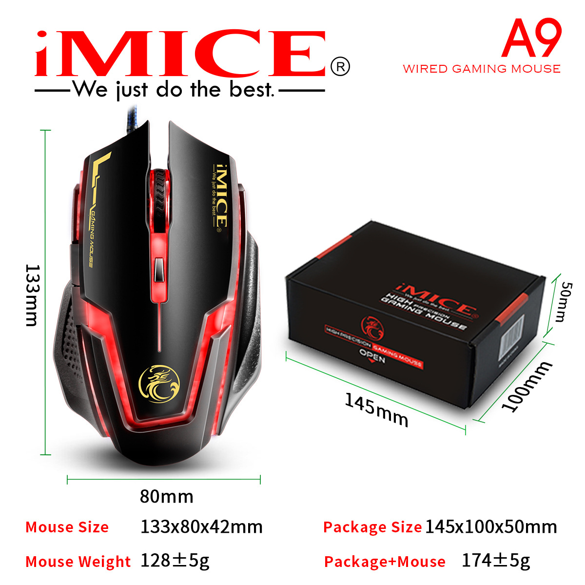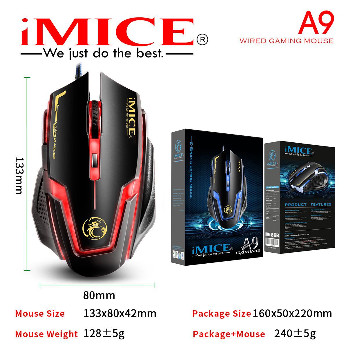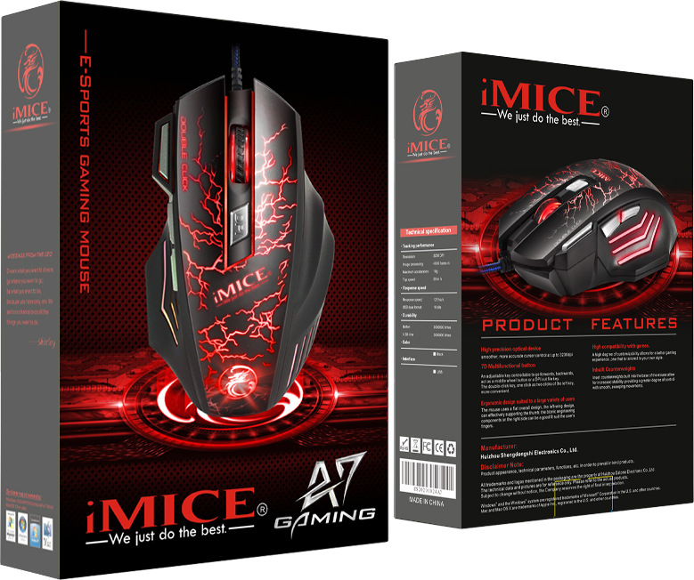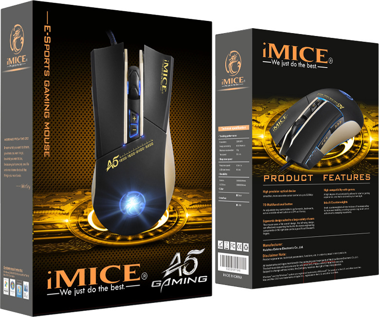 IMICE 제조업체는 A9 유선 게임 마우스 매크로 정의 6 키 4 색 제어 가능한 호흡 가벼운 전기 경쟁 무게를 직접 공급합니다.스토어 가기