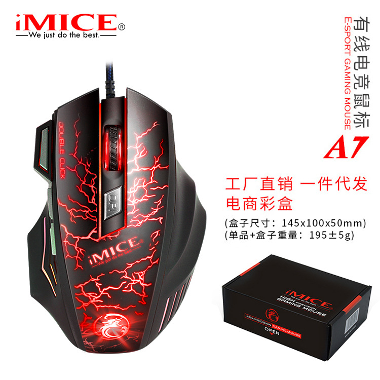 IMICE A7 제조업체 도매 유선 게임 마우스는 치킨 마우스 매크로 프로그래밍 광전 가중치를 먹습니다.스토어 가기