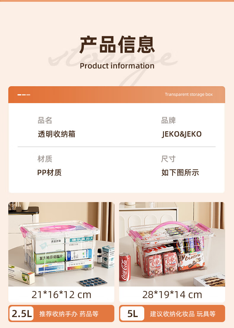 JEKO 저장 상자 플라스틱 가정용 간식 장난감 책 상자 어린이 옷 바지 투명 보관 상자스토어 가기