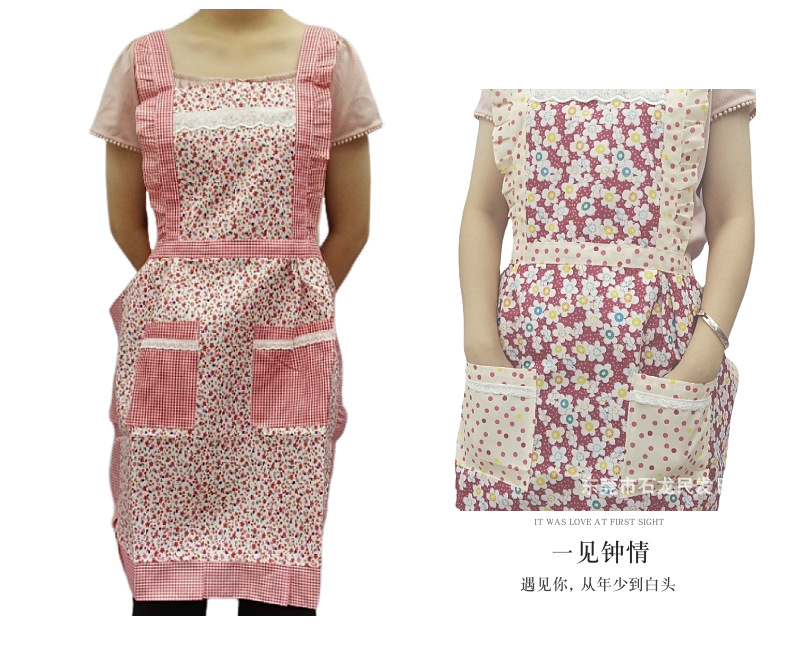 공장 가격 직공급 사이 웨이 야시 공주 앞치마 홈 키친 더블 포켓 기름 방지 꽃 앞치마 도매스토어 가기