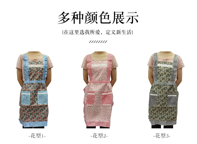 공장 가격 직공급 사이 웨이 야시 공주 앞치마 홈 키친 더블 포켓 기름 방지 꽃 앞치마 도매