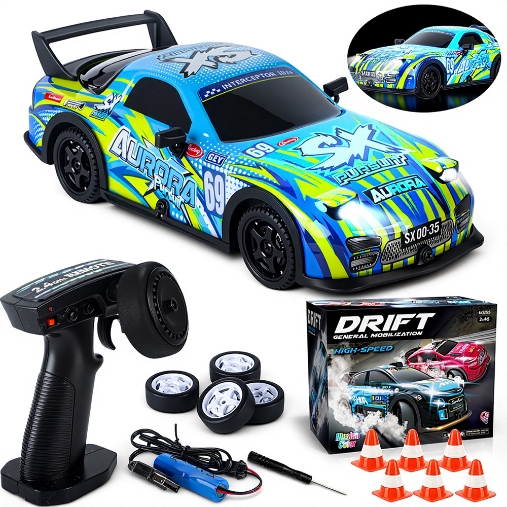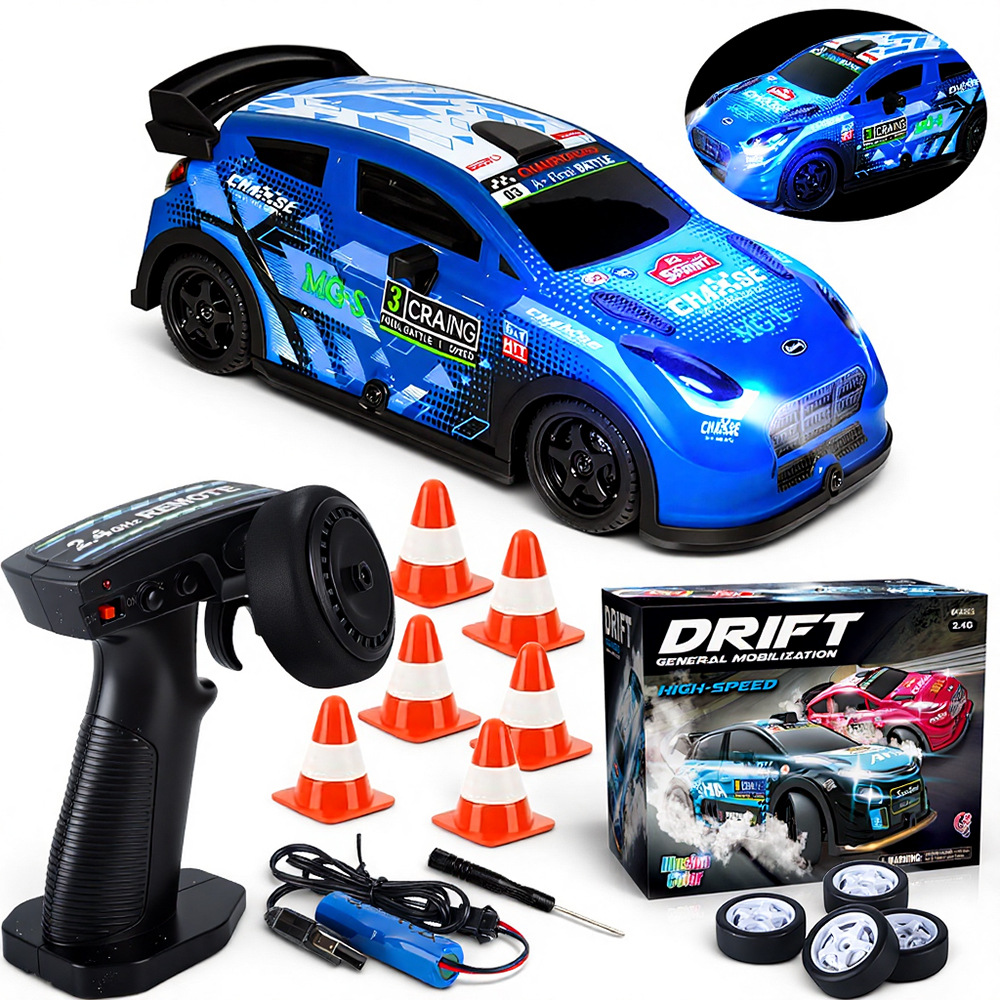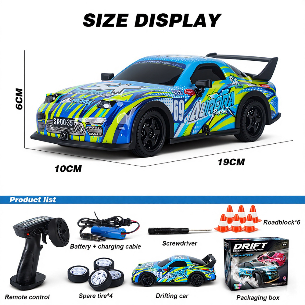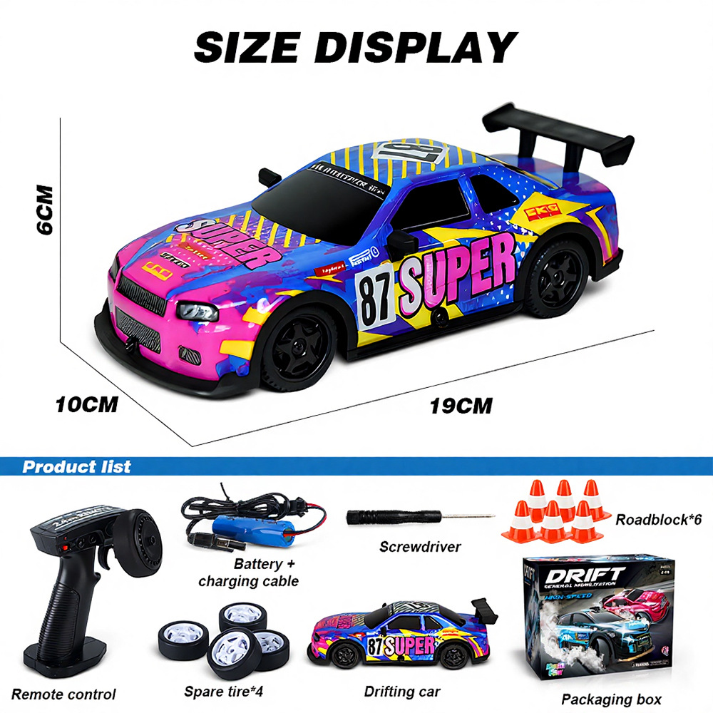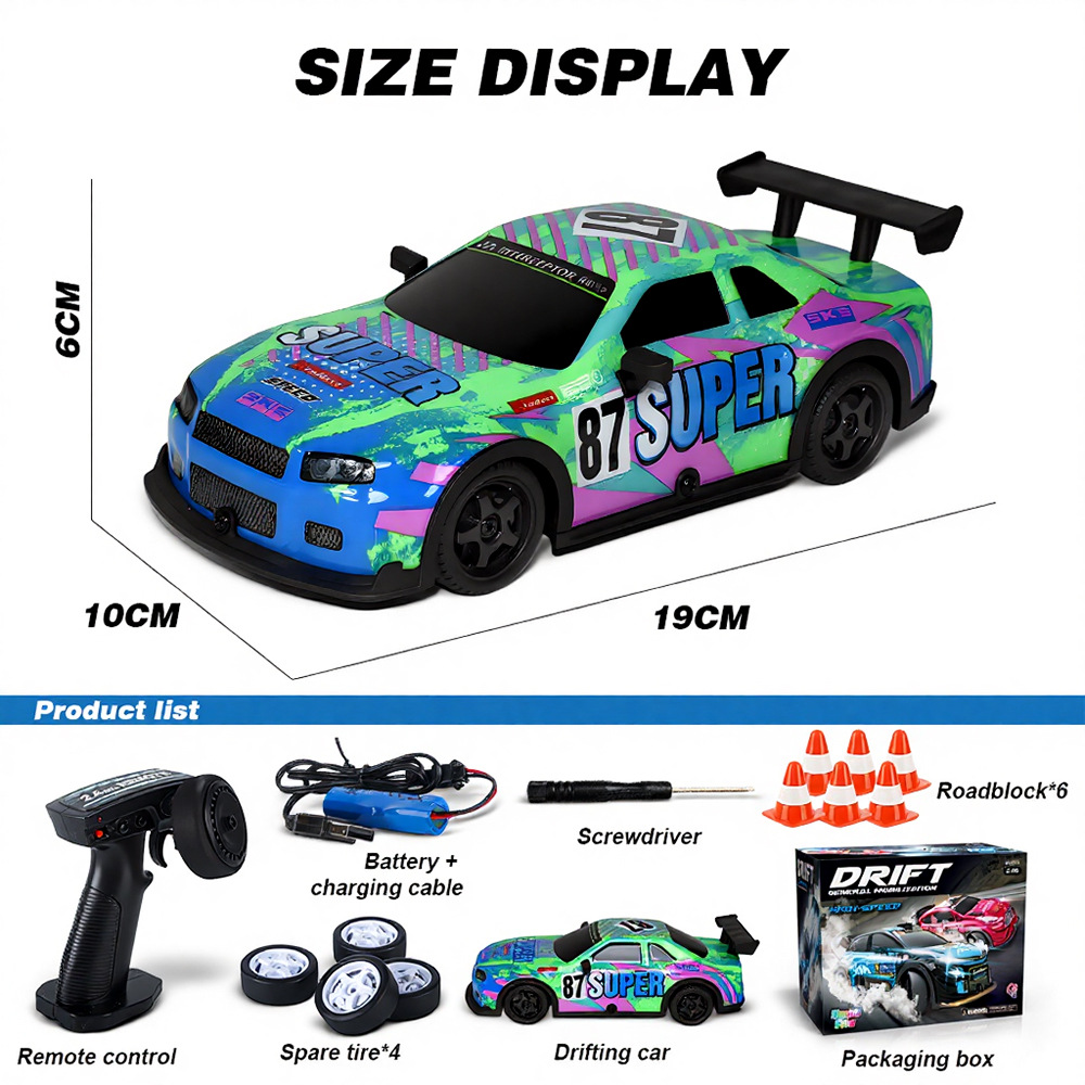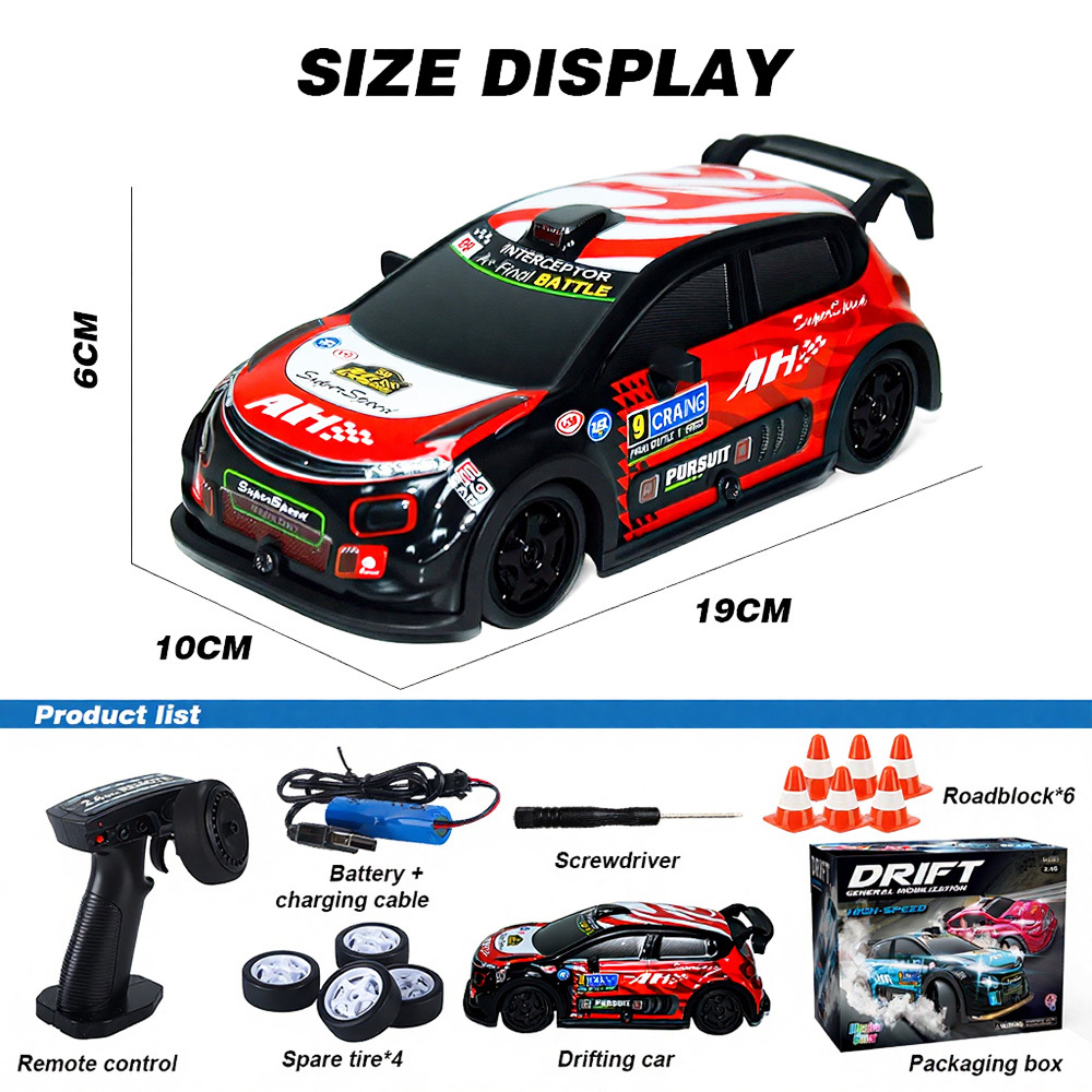 配件清单:遥控车,遥控器,漂移胎,车身电池,USB充电线,8国英文说明书,螺丝刀。