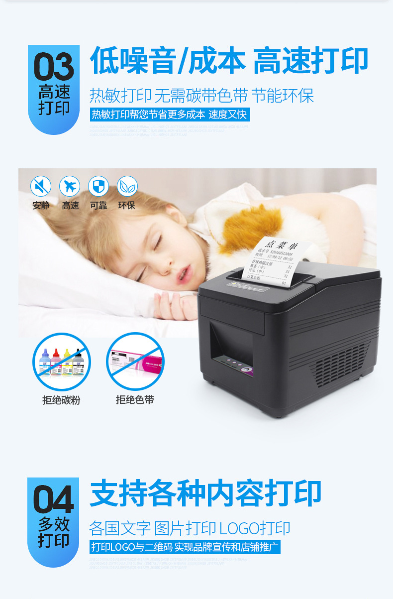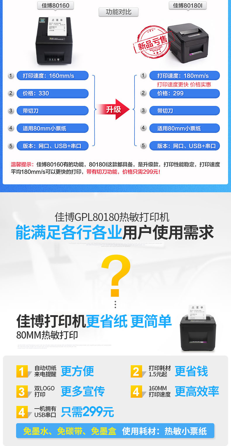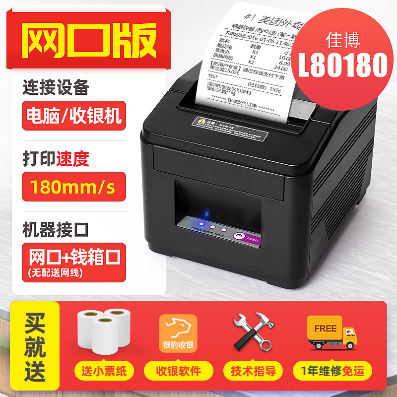 Jiabo 80180 영수증 프린터 80mm 케이터링 테이크 아웃 주방 주문 멀티 인터페이스 열 라벨 프린터스토어 가기
