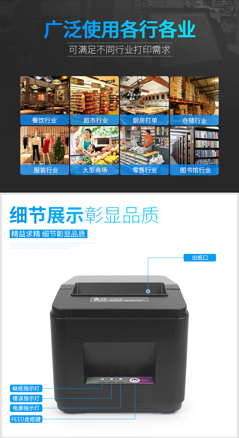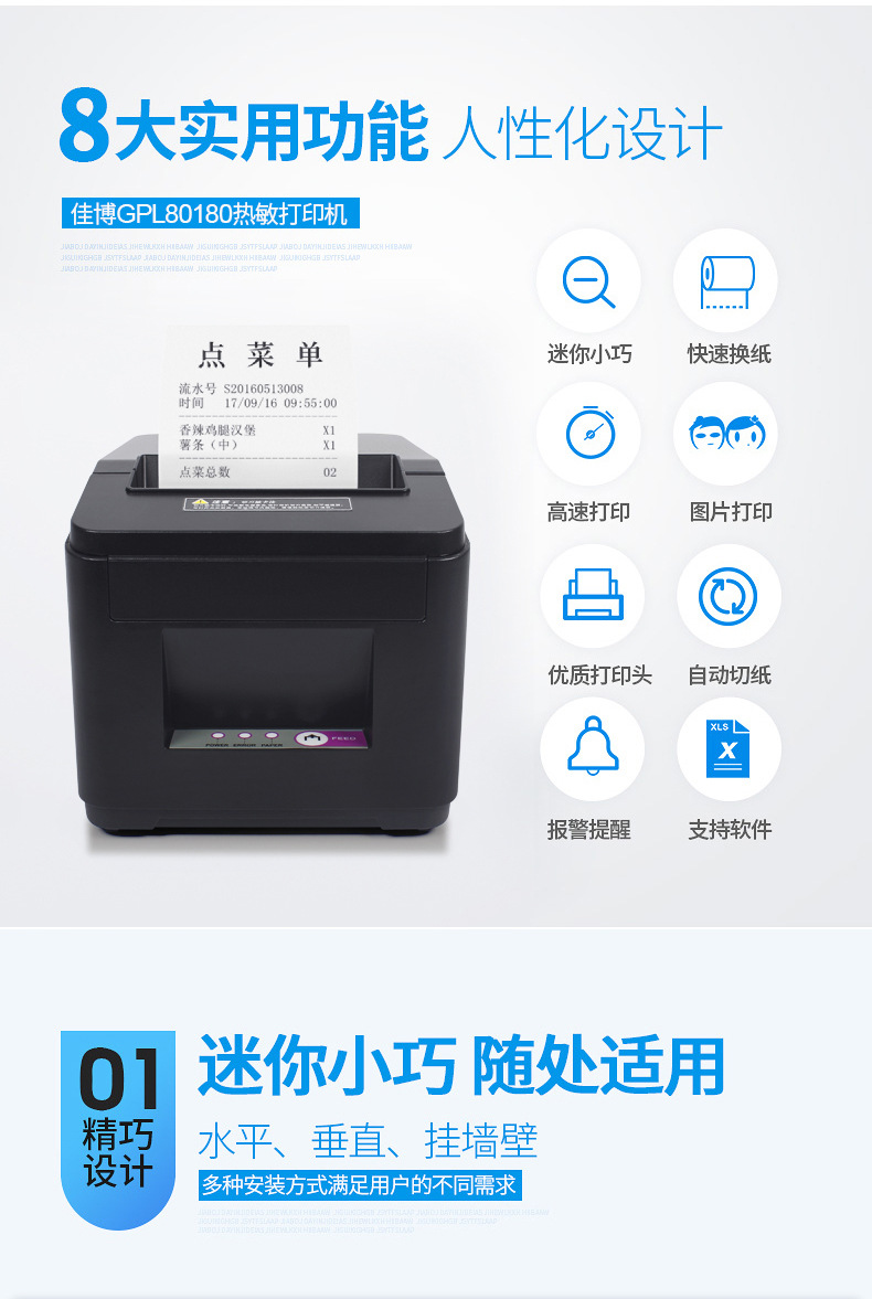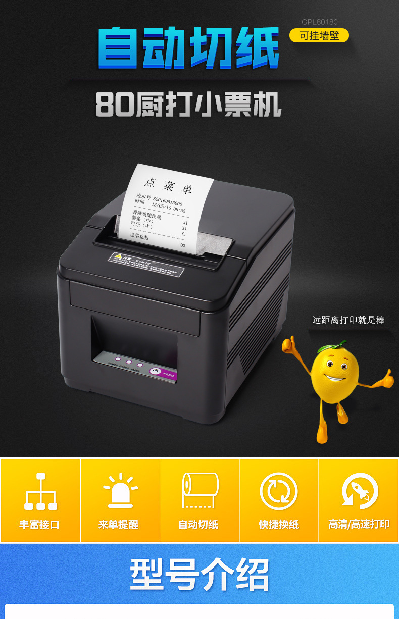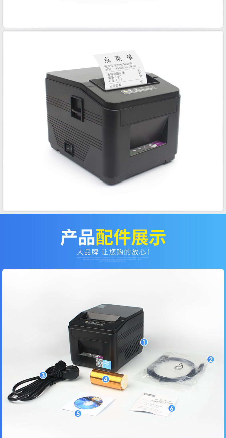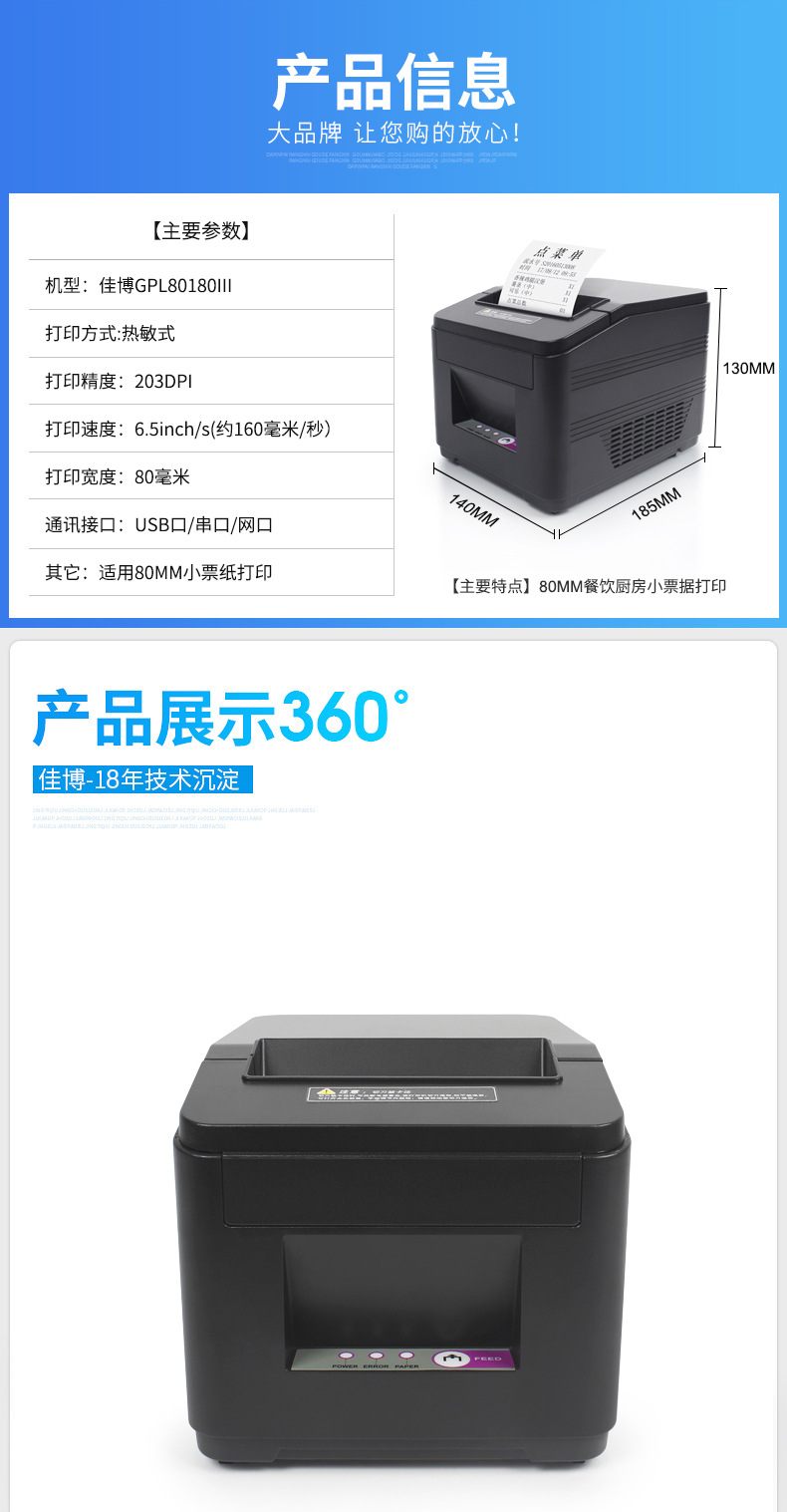 Jiabo 80180 영수증 프린터 80mm 케이터링 테이크 아웃 주방 주문 멀티 인터페이스 열 라벨 프린터