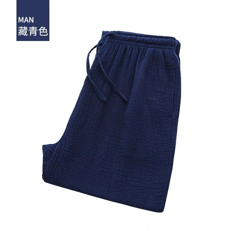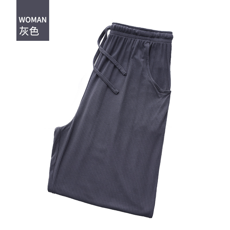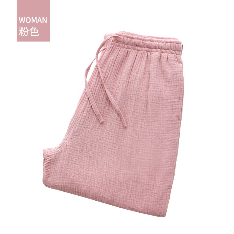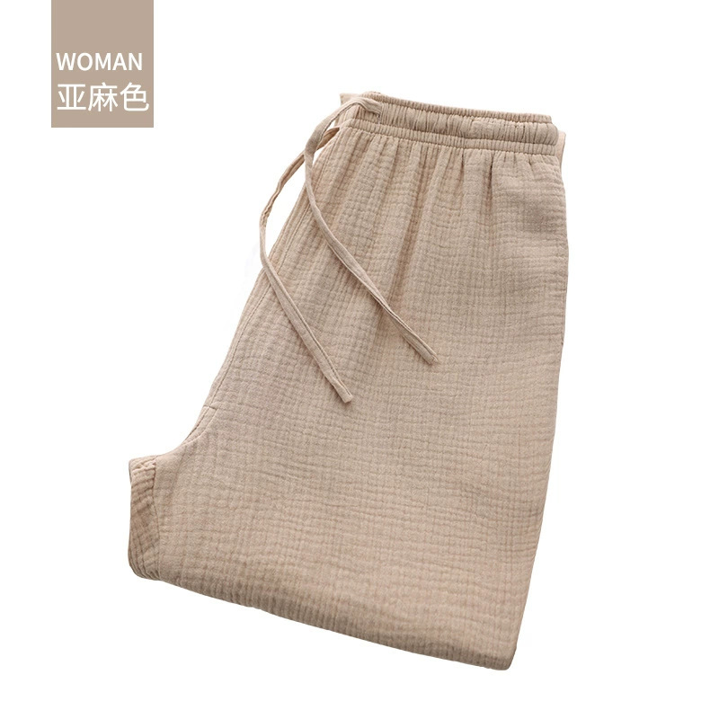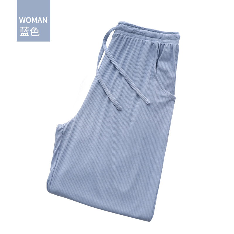 커플 크레이프 파자마 바지 봄 여름 얇고 통기성이 좋은 남녀 홈 팬츠 심플 루즈 커프 바지 외부 착용 가능스토어 가기