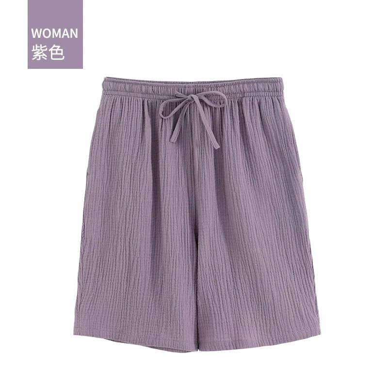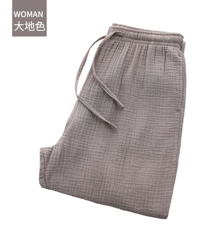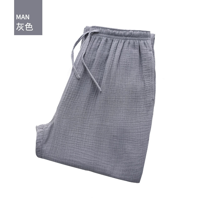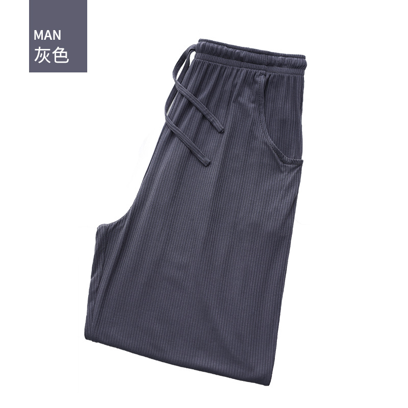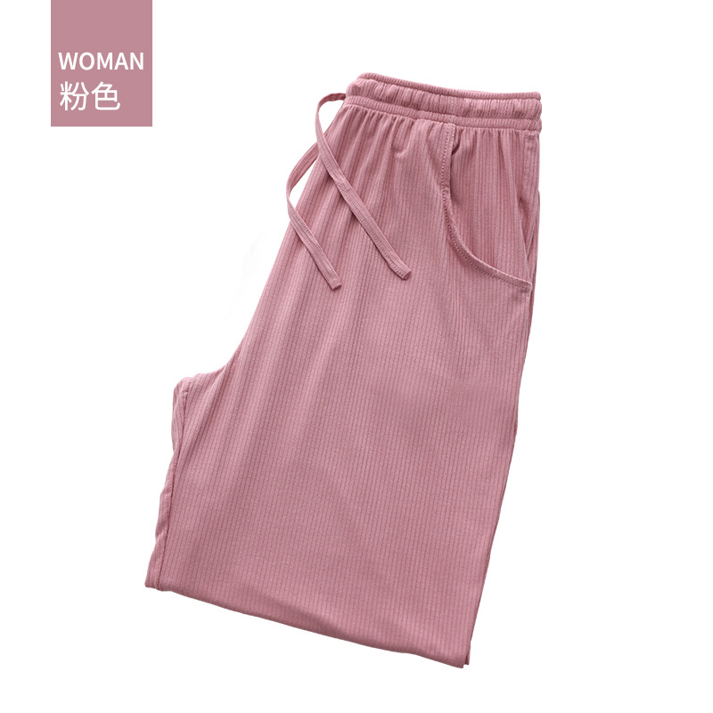 커플 크레이프 파자마 바지 봄 여름 얇고 통기성이 좋은 남녀 홈 팬츠 심플 루즈 커프 바지 외부 착용 가능스토어 가기
