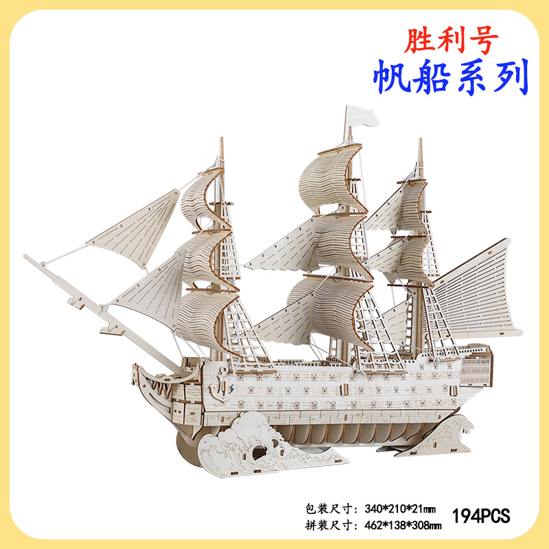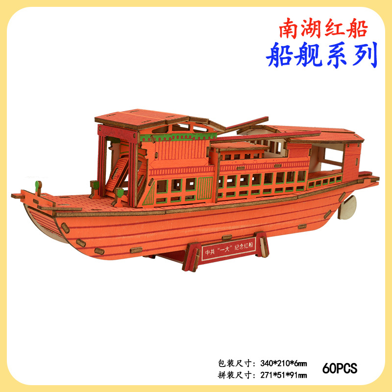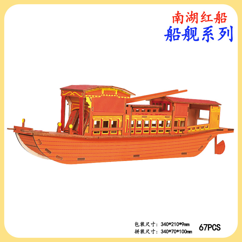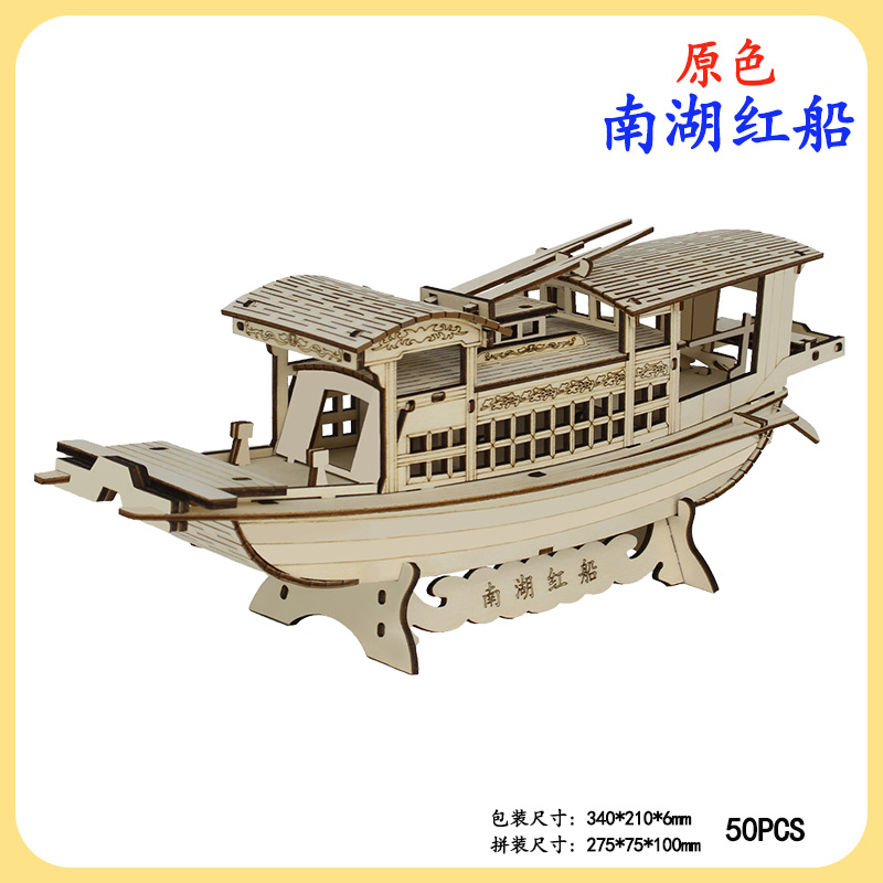 Nanhu Red Boat 손으로 조립한 요트 모델 기념일 기념품 나무 3D 입체 퍼즐 노점 장난감 도매