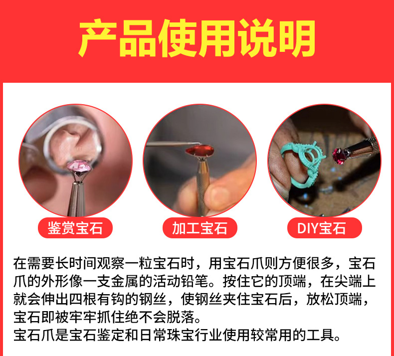 스테인리스 스틸 4구 클립, 루스 다이아몬드/보석/지르코니아 쥬얼리 집게, 보석 집게, 다이아몬드 집게 고정 도구스토어 가기