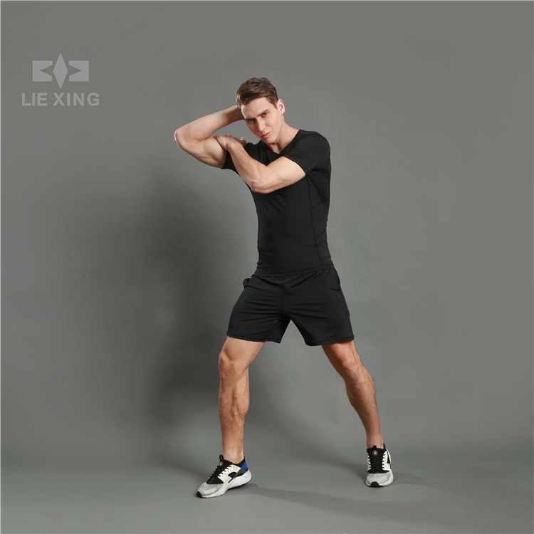 사냥 스타 꽉 반팔 남자의 스포츠 티셔츠 라운드 넥 피트니스 세트 단색 실행 티셔츠 빠른 건조 공장 logo12001