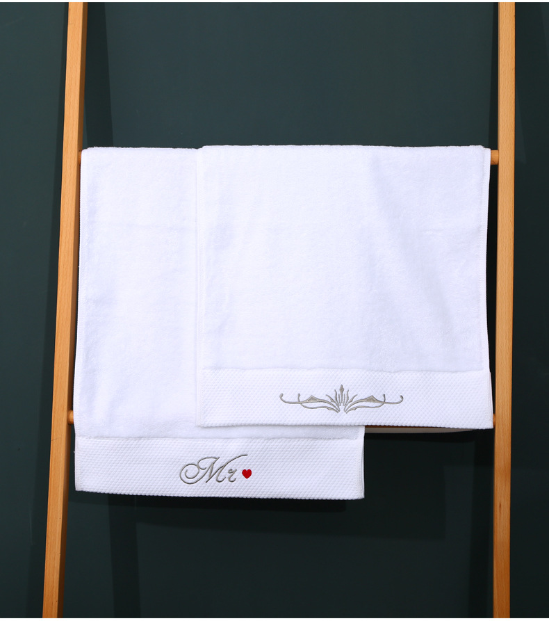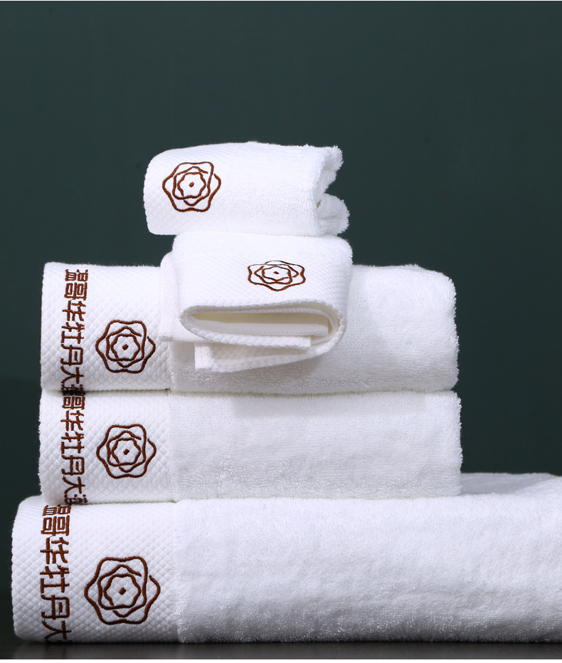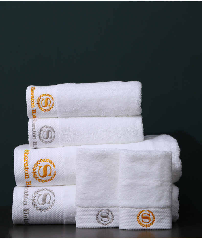 코튼 호텔 타월 흡수성 호텔 목욕 타월 세트 자수 로고 코튼 화이트 타월 두꺼운 호텔 타월