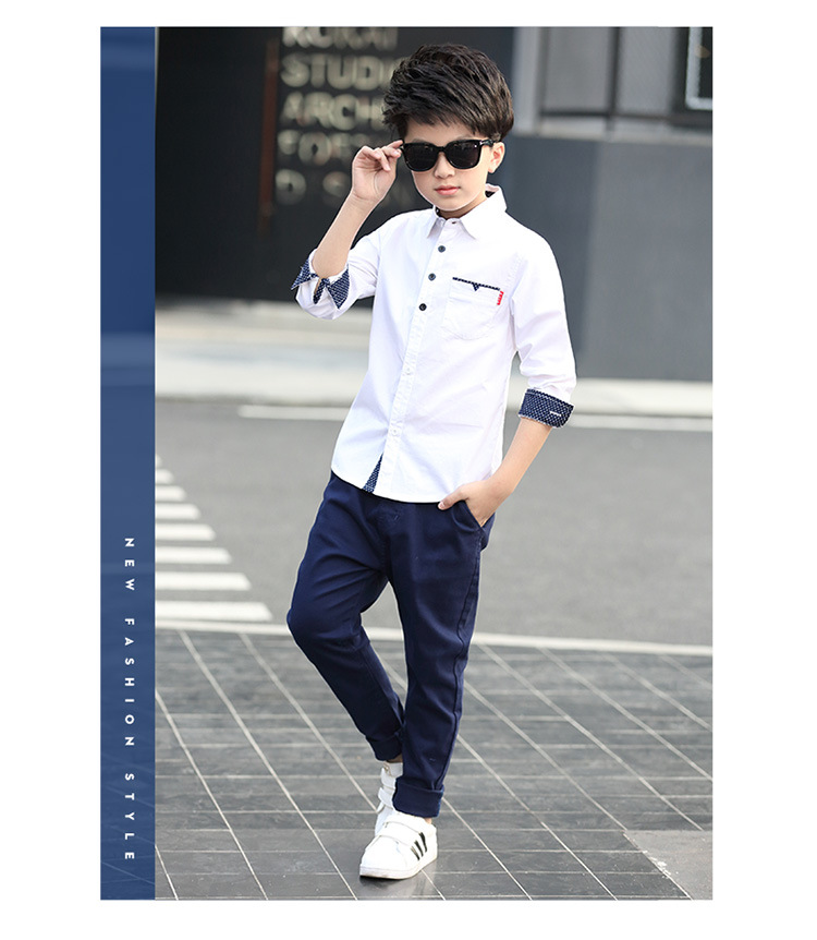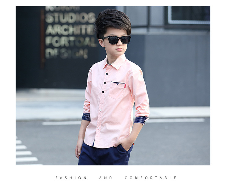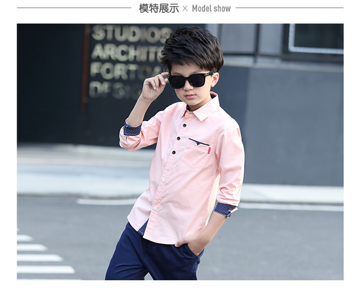 남아용 긴팔 셔츠 2026 중대형 어린이 초등학생 봄 가을 스타일 트렌디한 라운드 칼라 도트 무늬 수출용 셔츠 상의