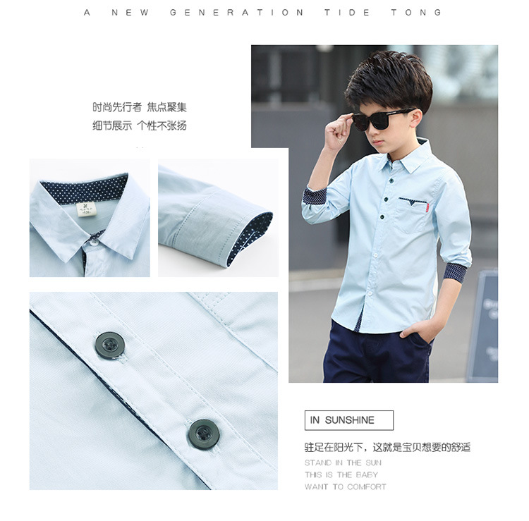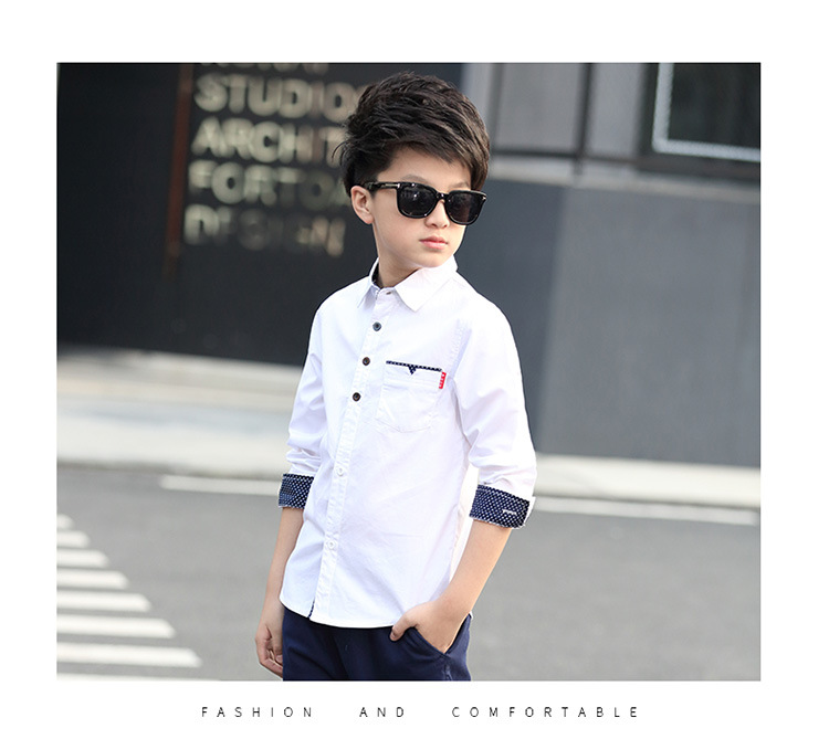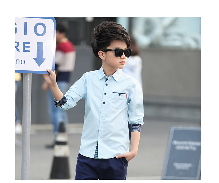 남아용 긴팔 셔츠 2026 중대형 어린이 초등학생 봄 가을 스타일 트렌디한 라운드 칼라 도트 무늬 수출용 셔츠 상의스토어 가기