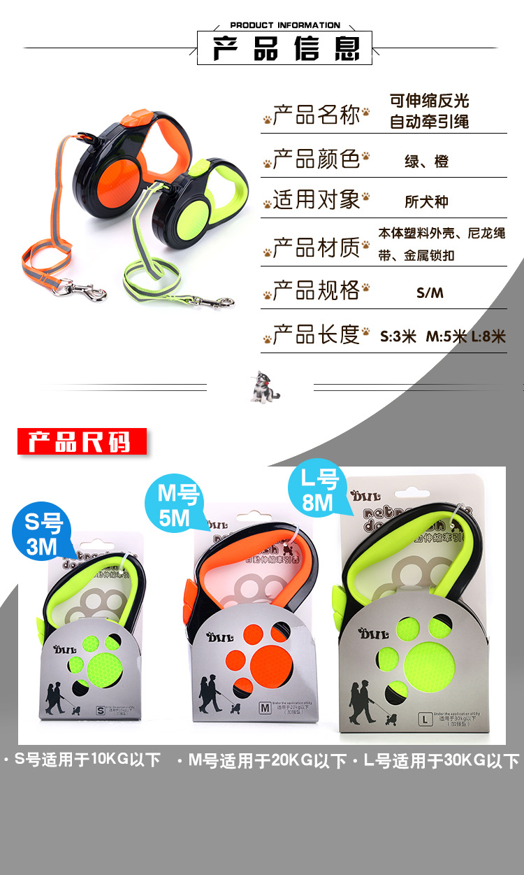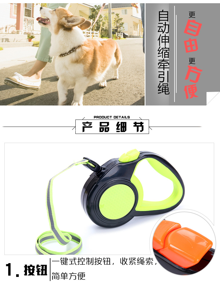 자동 신축식 야외 반사견줄, 반사 기능이 있는 반려견 산책줄, 반려동물 용품 제조업체 직판, 재고 있음