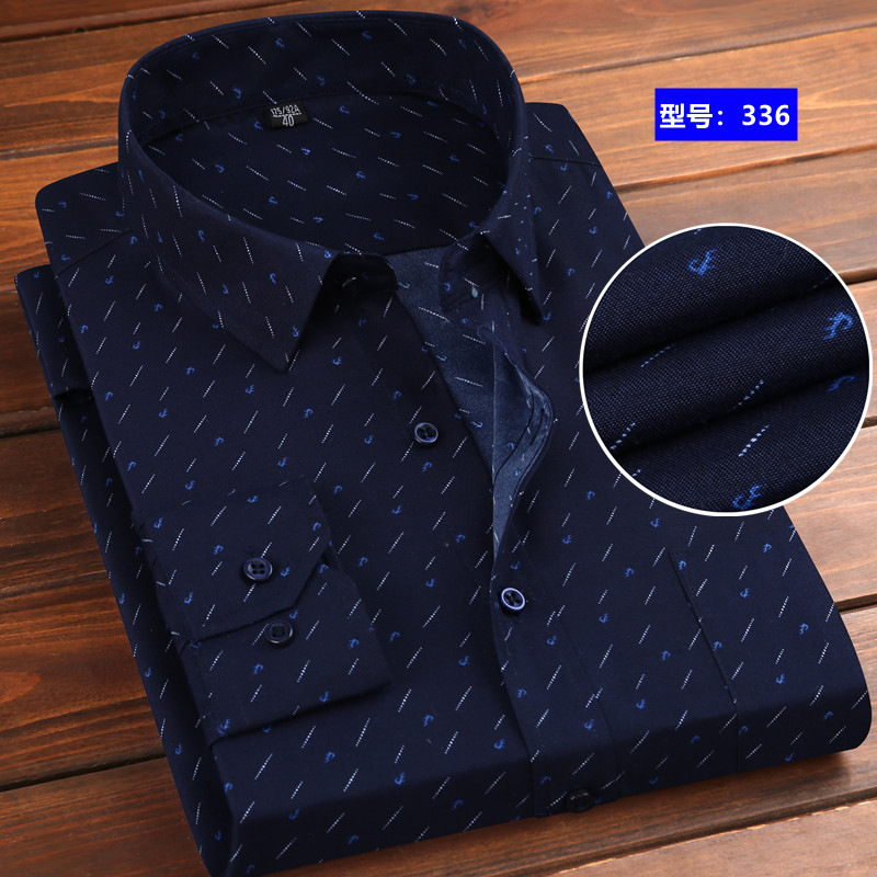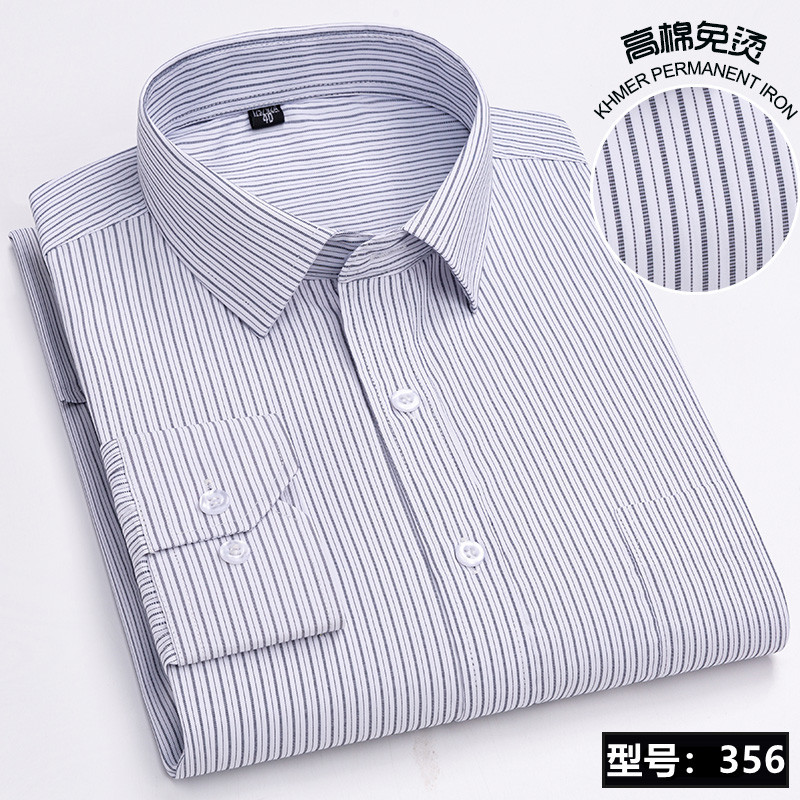 새로운 중년 및 노인 남성용 봄과 가을 긴팔 스트라이프 프린트 셔츠 중년 및 노인 남성용 긴팔 남성용 비 다림질 화이트스토어 가기