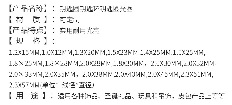 니켈 도금된 금속 열쇠고리, 평평한 링, 키링, 키체인, 액세서리, 정교한 디자인