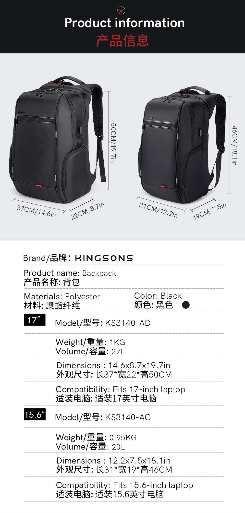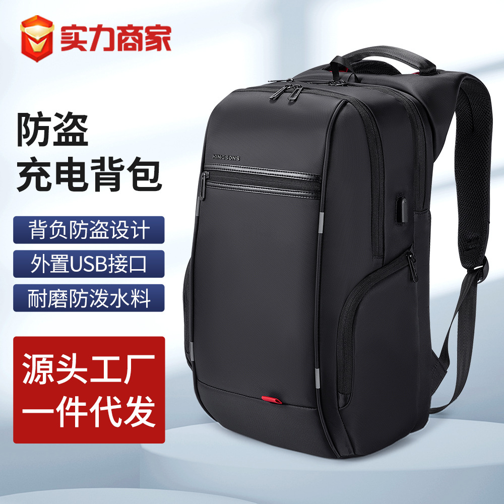 Jinshengsi 크로스 보더 폭발적인 나일론 배낭 남성용 USB 충전 비즈니스 배낭 컴퓨터 가방 여행 배낭스토어 가기