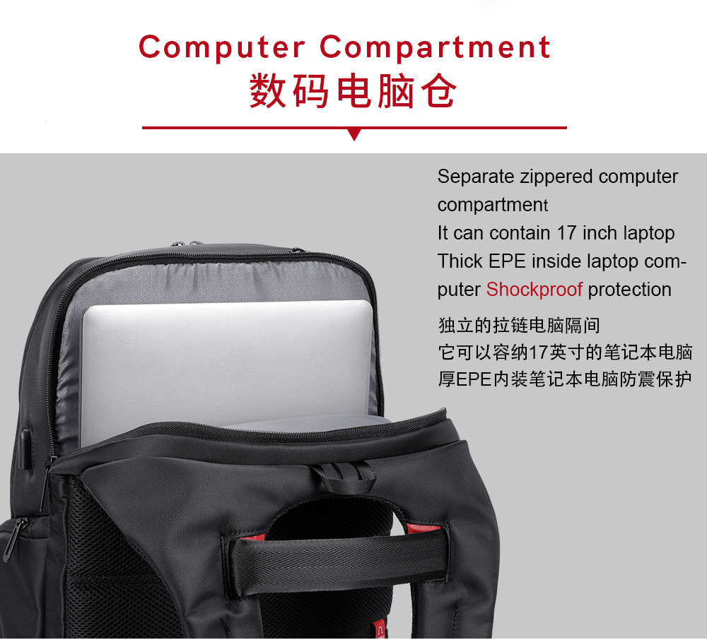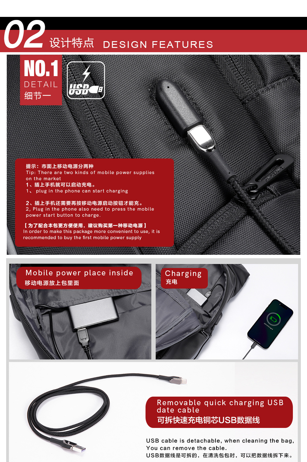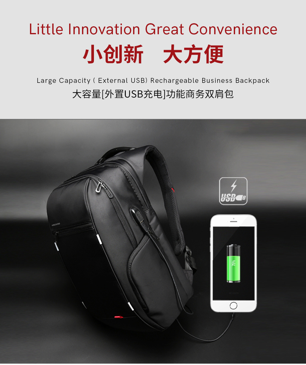 Jinshengsi 크로스 보더 폭발적인 나일론 배낭 남성용 USB 충전 비즈니스 배낭 컴퓨터 가방 여행 배낭
