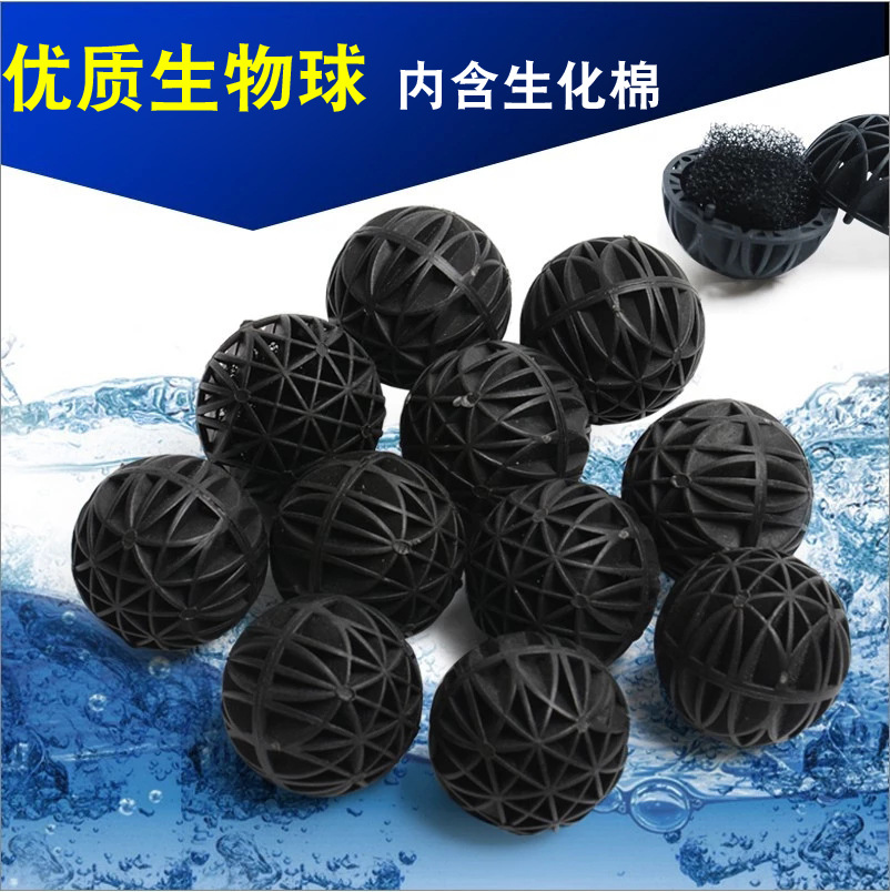 作用:生物球是一种塑料材料制成的中空球体,它的表面积较大,可以大量的附着硝化细菌。水流经过时不会产生阻力,中空的结构可将水分成细流,并将大块的污垢击碎,过滤效果极好。由于生物球重量轻,携带方便,它不但可用在海水中生化过滤系统,而且还可用在淡水中生化过滤系统。生化球的原理,就是让水流通过分布在内部曲折的空间中,延长水流的时间,加上里面错落有致的多柱结构附着的硝化菌来达到生化过滤的效果。每一个的水族箱的过滤器,都是有限的,放置生化球的过滤空间也不会太大,但就是藉由生化球这种功能,以弥补过滤空间的不足。